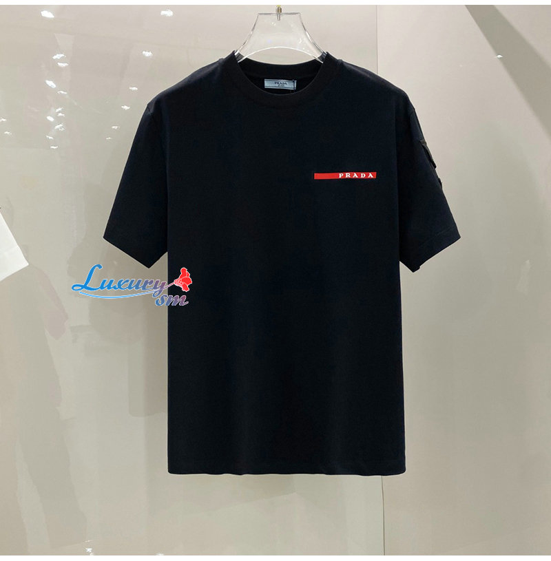 PRADA-03276 프라다 블랙 트라이앵글 로고 티셔츠 남여공용