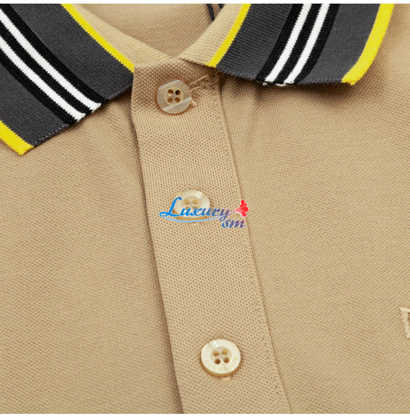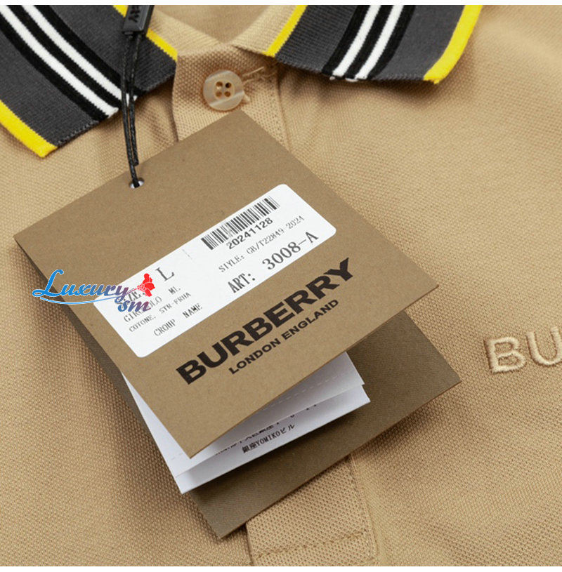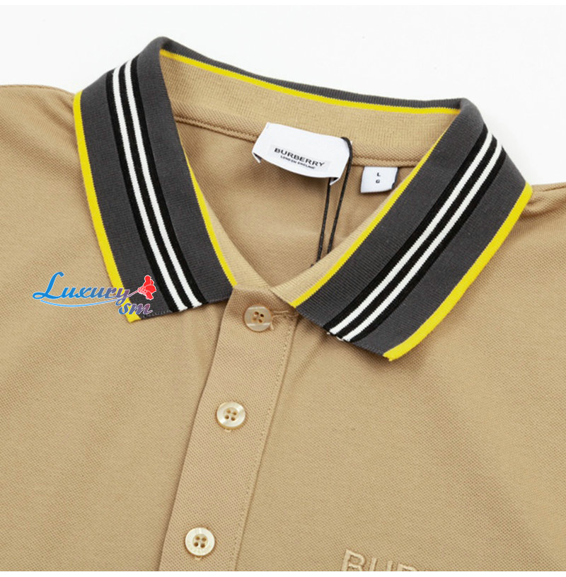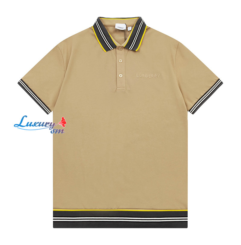 BURBERRY-04017 버버리 베이지 스트라이프 장식 폴로 티셔츠 남성용