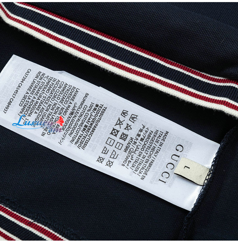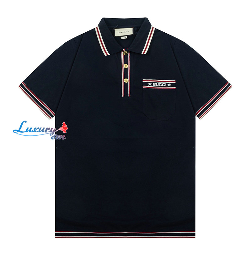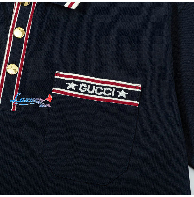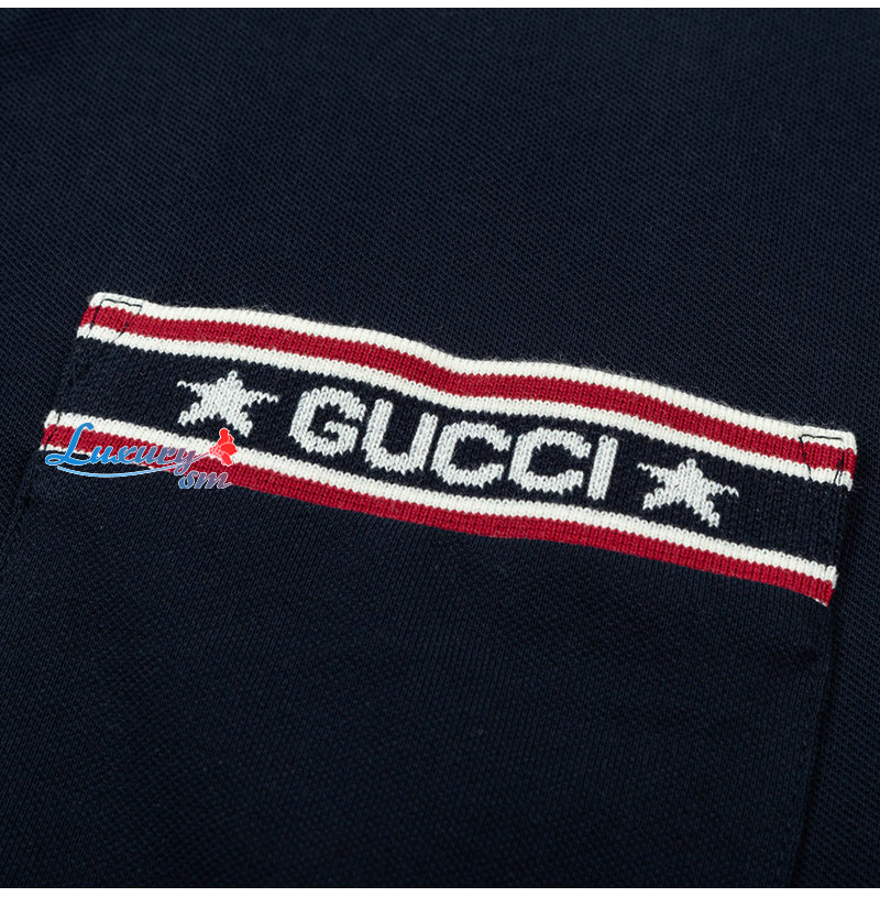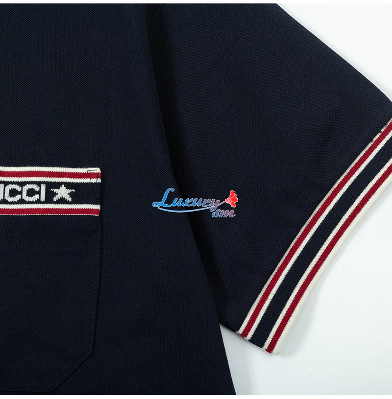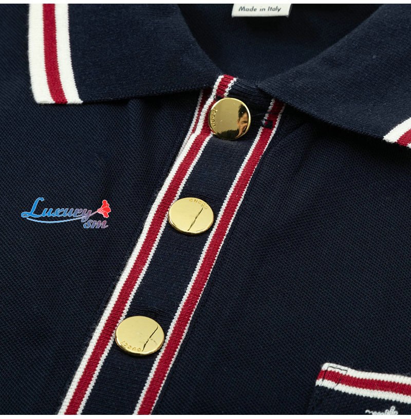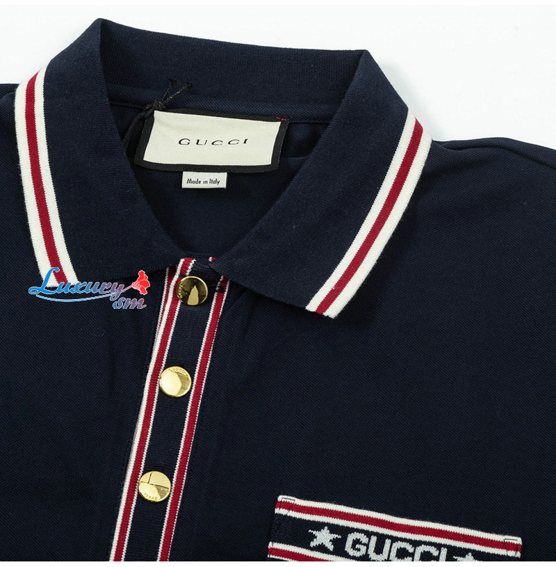 GUCCI-04013 구찌 네이비 스트라이프 장식 폴로 티셔츠 남성용