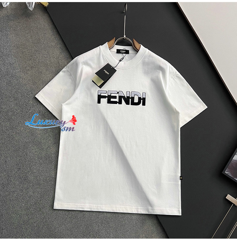 FENDI-06045 펜디 화이트 아플리케 장식 티셔츠 남성용