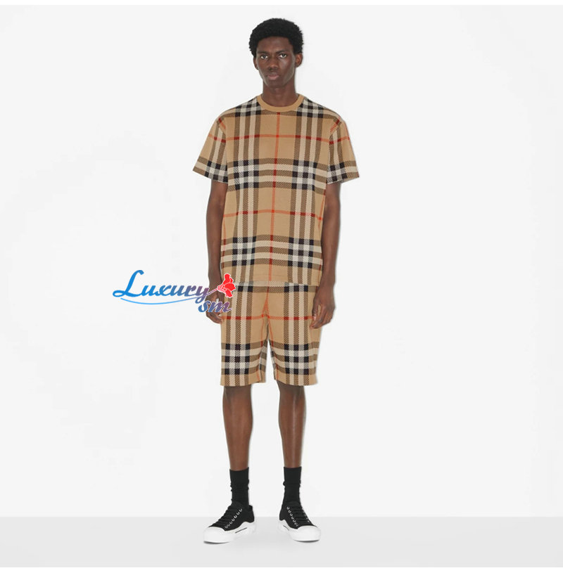 BURBERRY-06223 버버리 베이지 니트 코튼 체크 티셔츠 남여공용