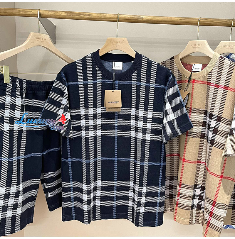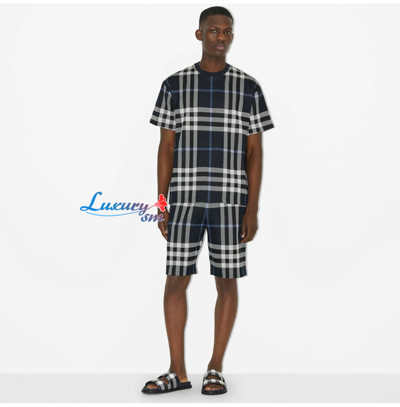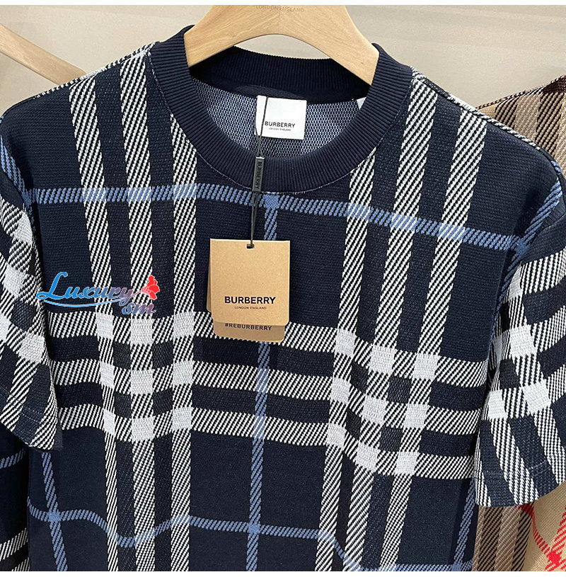 BURBERRY-06224 버버리 네이비 니트 코튼 체크 티셔츠 남여공용