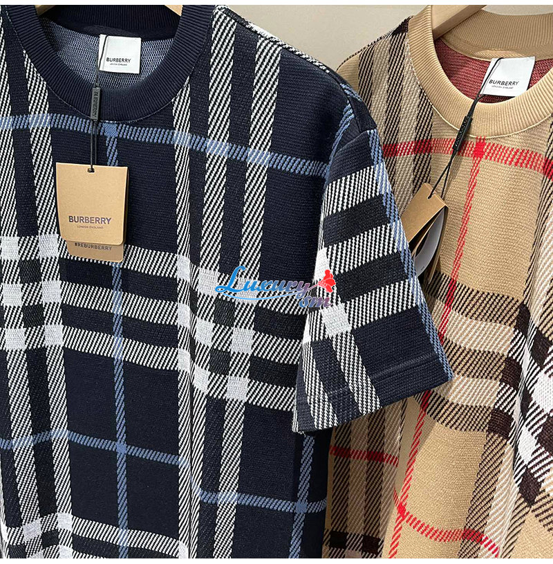 BURBERRY-06223 버버리 베이지 니트 코튼 체크 티셔츠 남여공용