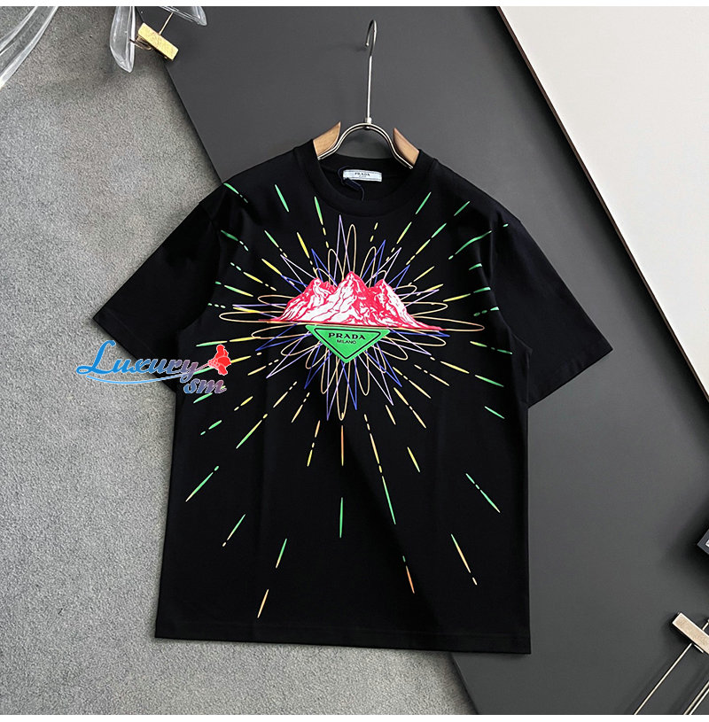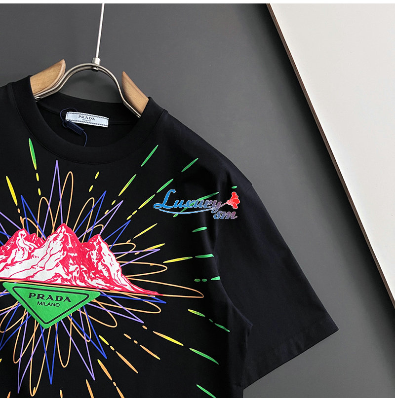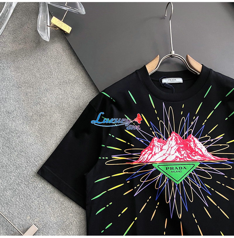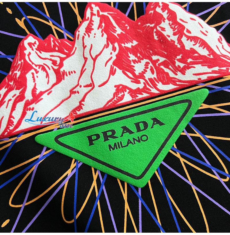 PRADA-06267 프라다 블랙 프린트 장식 티셔츠