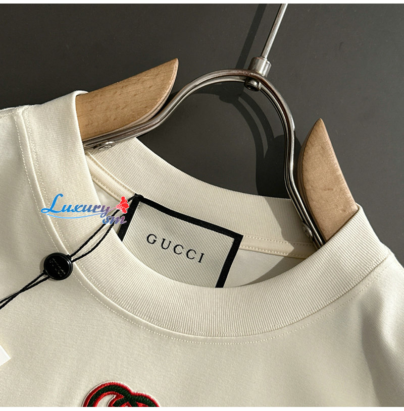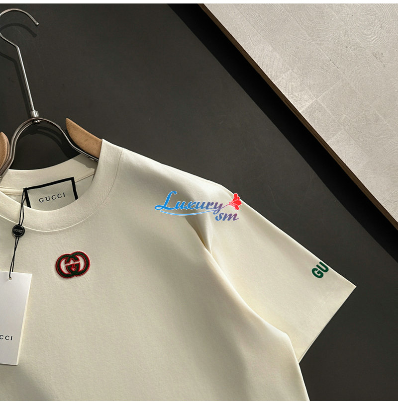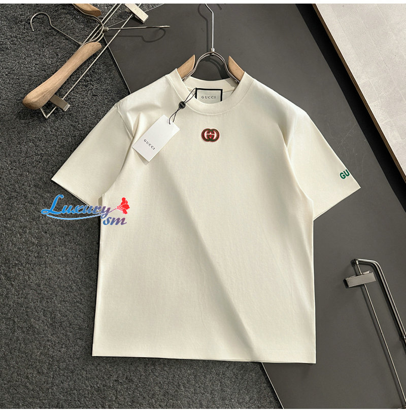 GUCCI-06264 구찌 아이보리 GG 아플리케 장식 티셔츠 남성용