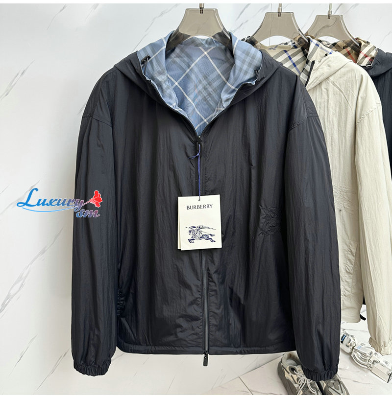 BURBERRY-081110 버버리 블루 체크 양면 바람막이 후드 재킷 남여공용