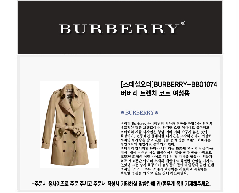[스페셜오더]BURBERRY-BB01074 버버리 트렌치 코트 여성용
