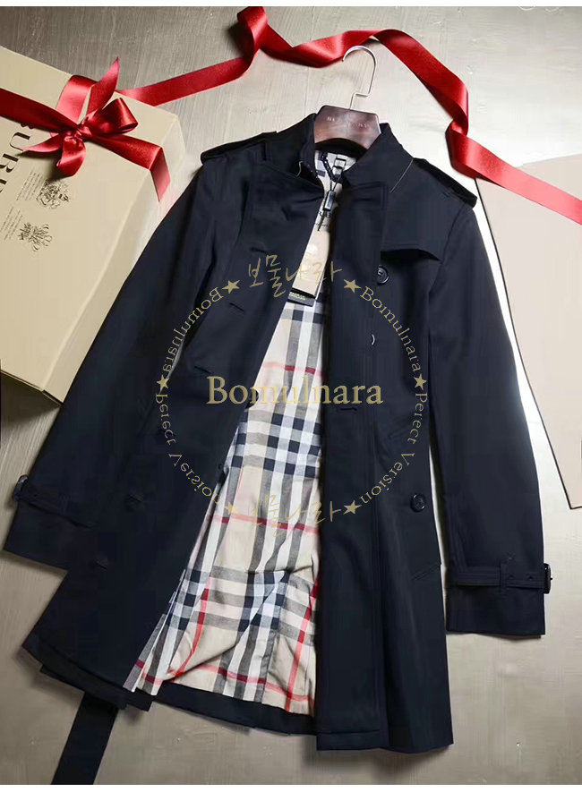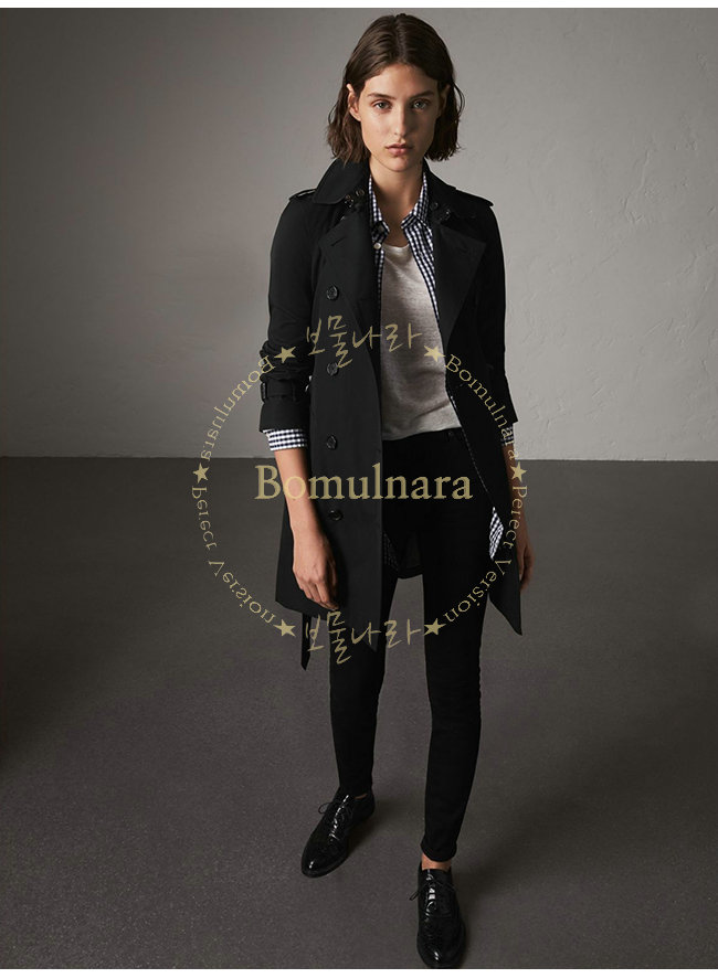 [스페셜오더]BURBERRY-39004591 버버리 켄징턴 블랙 미드 렝스 헤리티지 트렌치코트 여성용