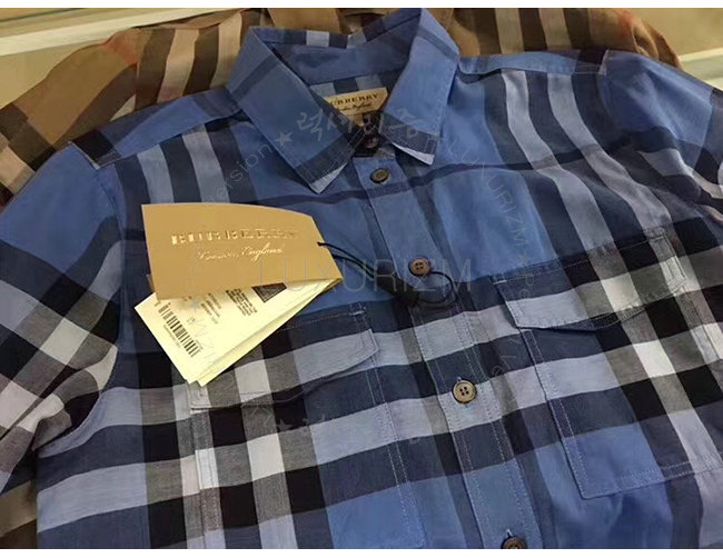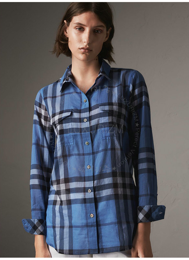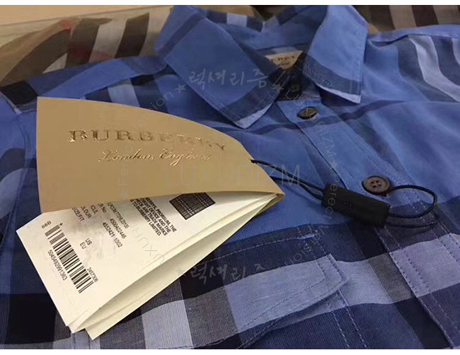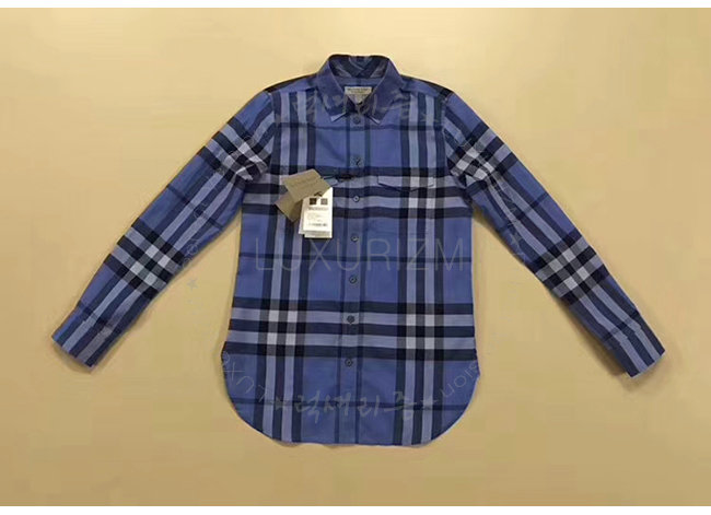 BURBERRY-40369601 버버리 하이드레인저 블루 체크 코튼 셔츠 여성용