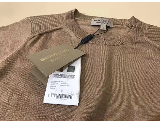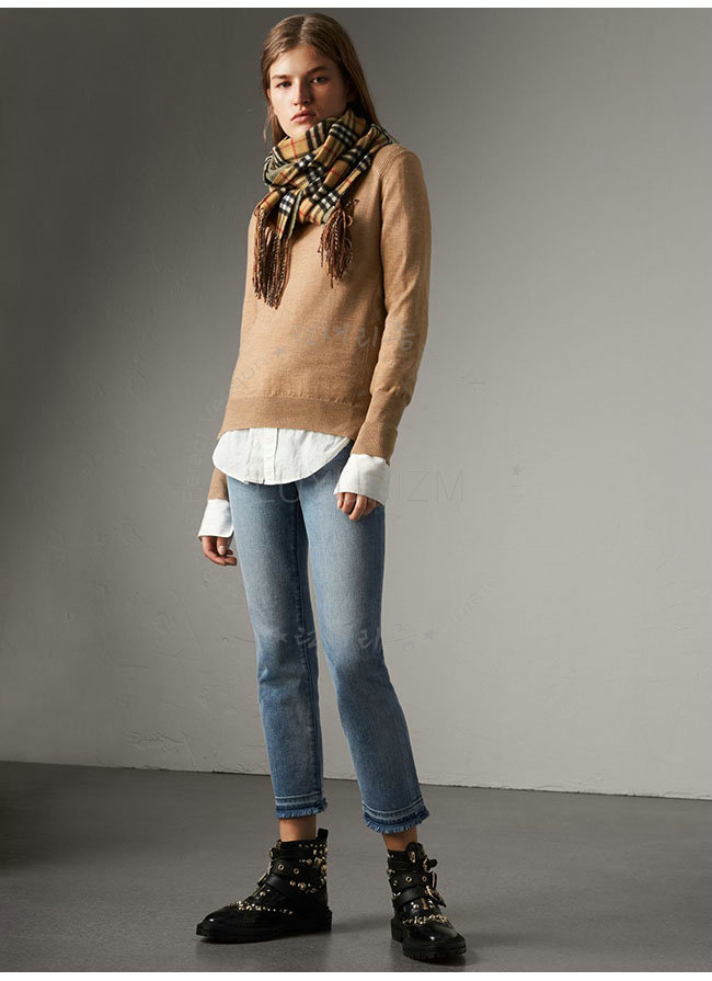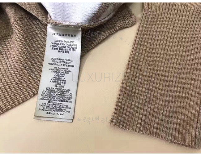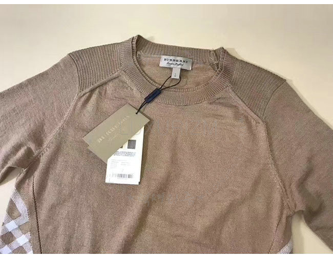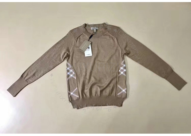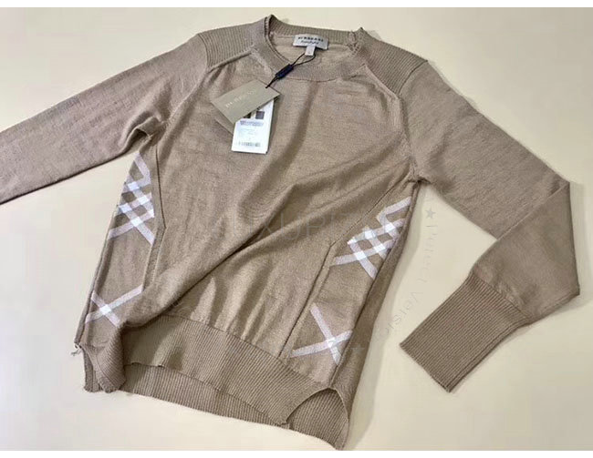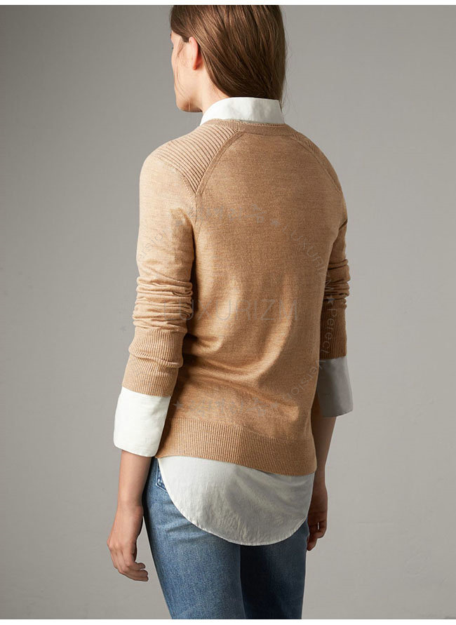 BURBERRY-40575771 버버리 카멜 체크 디테일 메리노 울 스웨터 여성용