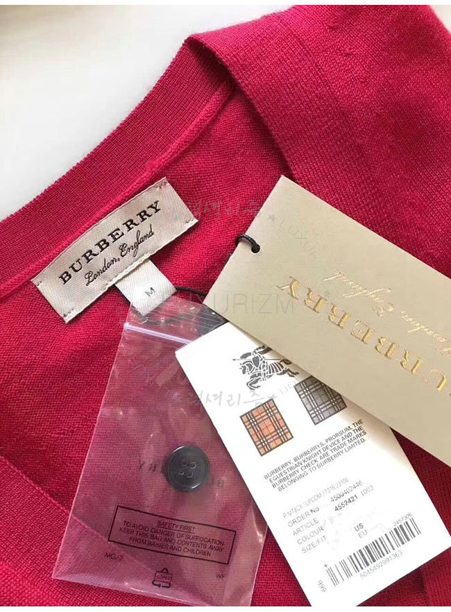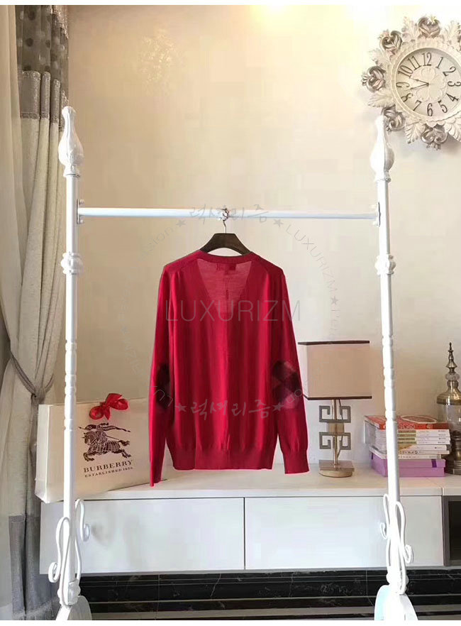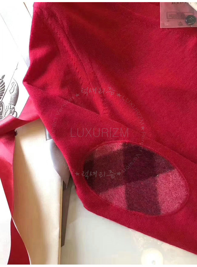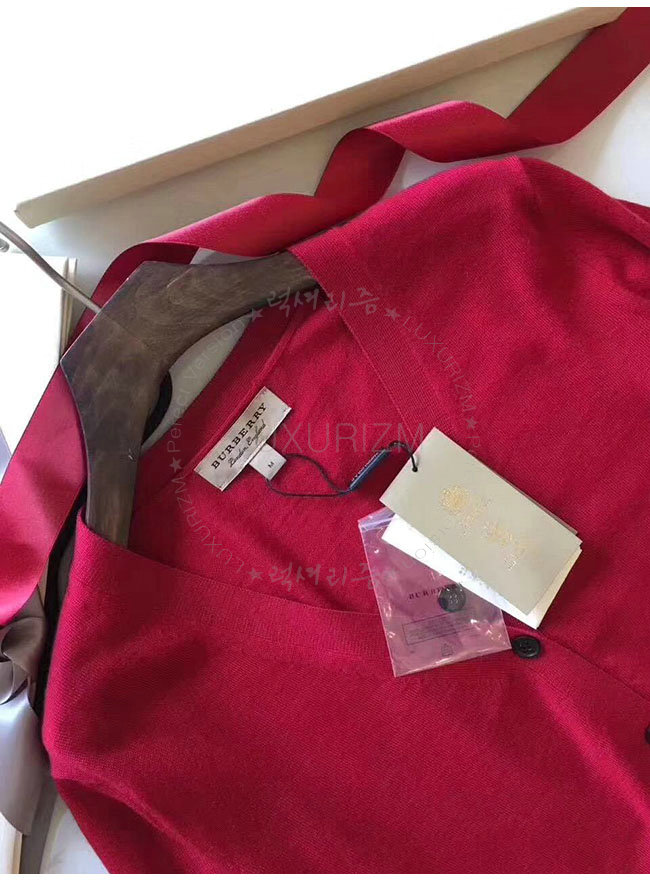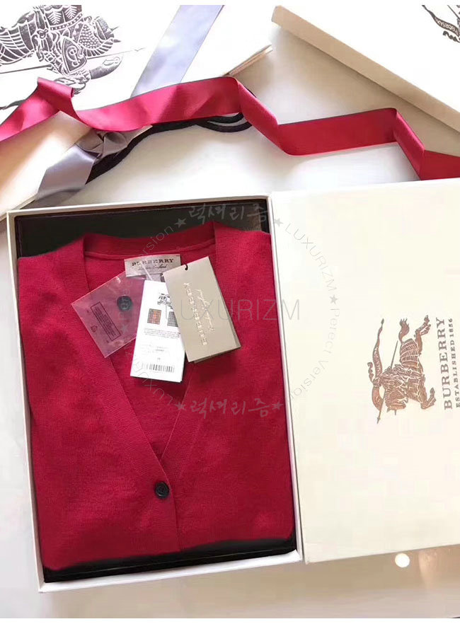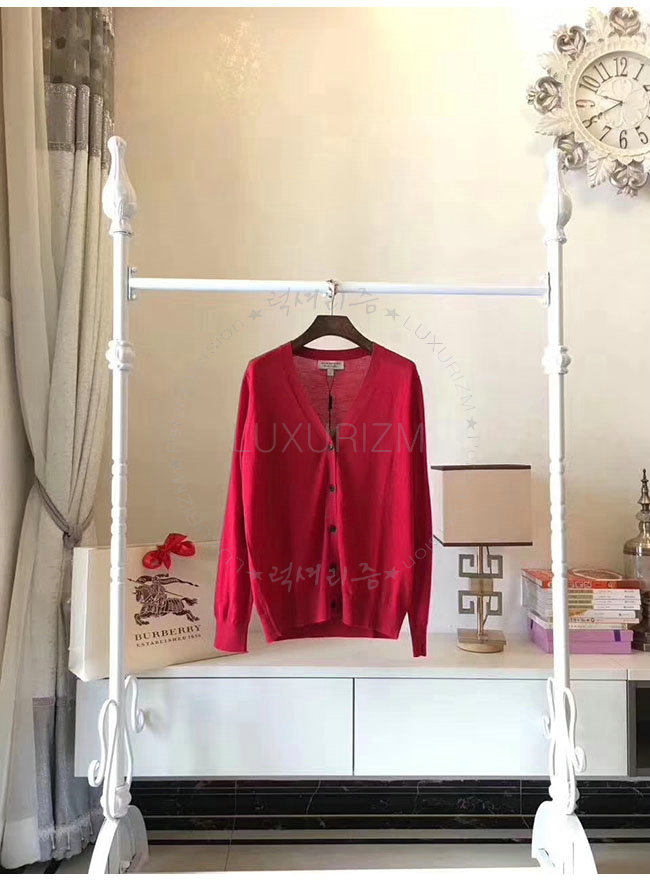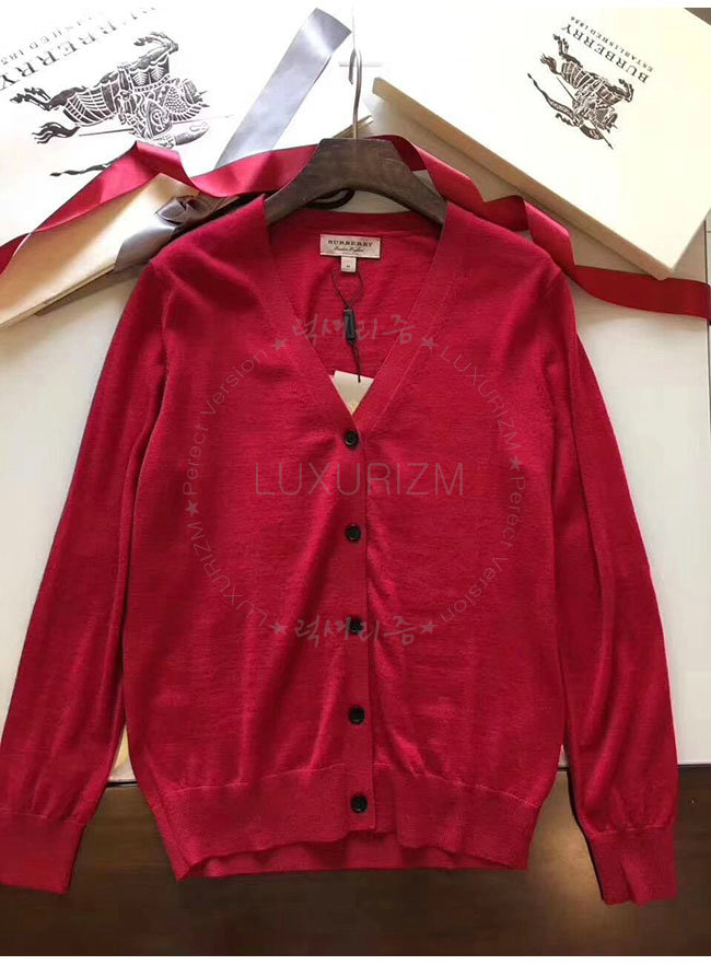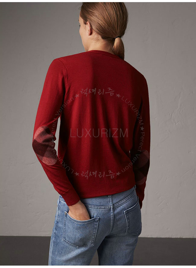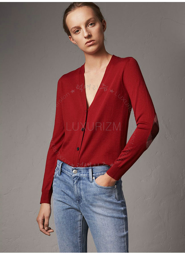 BURBERRY-40038421 버버리 레드 체크 디테일 메리노 울 카디건 여성용