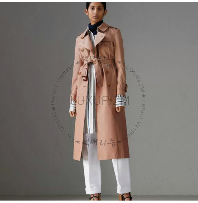 BURBERRY-40758041 버버리 핑크 애프리콧 트로피컬 개버딘 트렌치코트