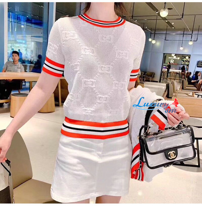 스트라이프 트리밍의 GG 니트 탑 약 100년 동안