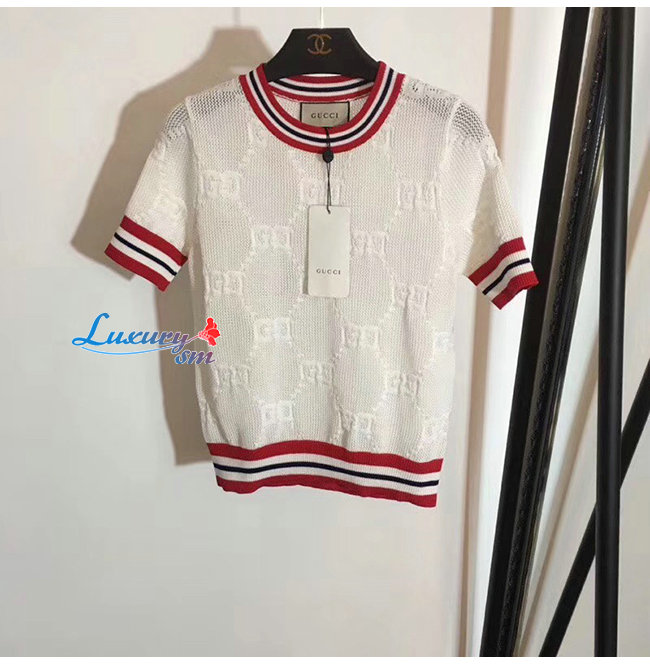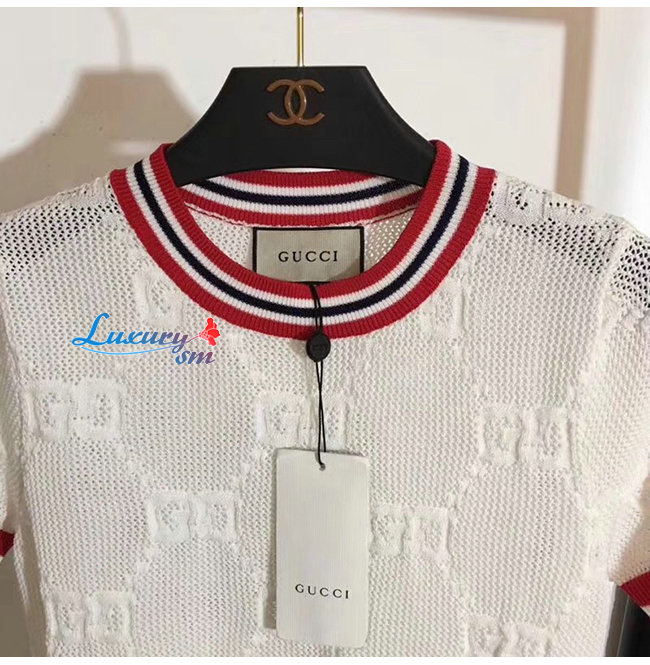 GUCCI-579818 9376 구찌 화이트 GG 울 실크 탑