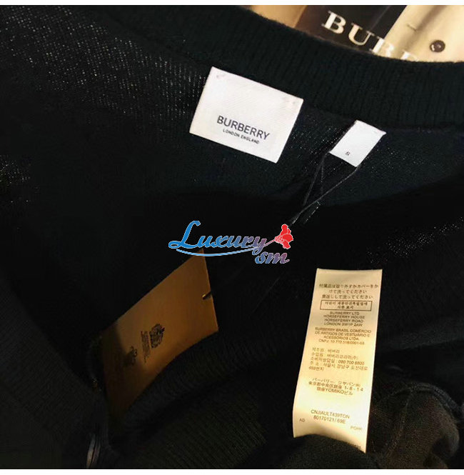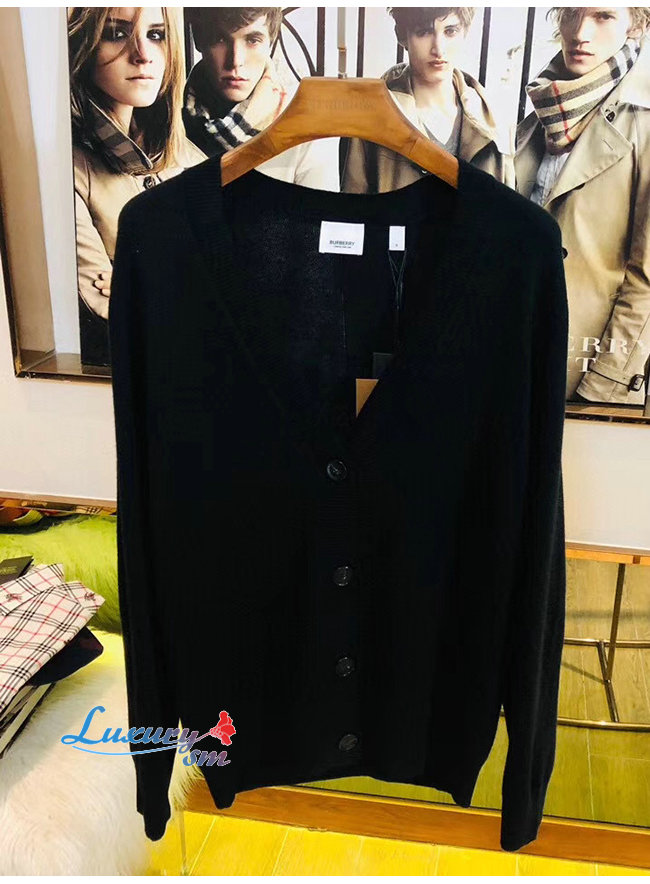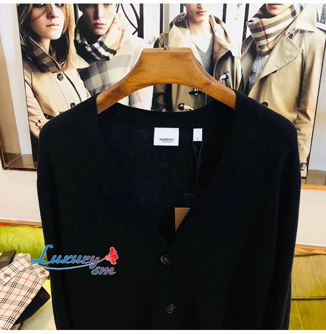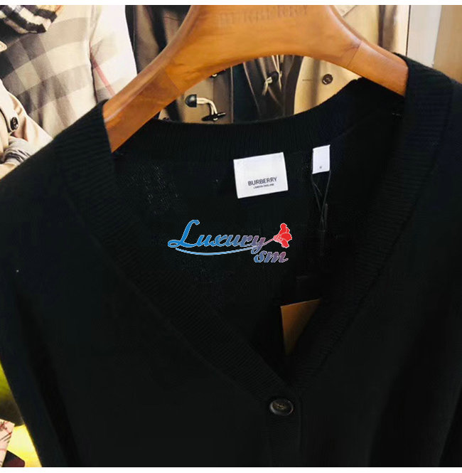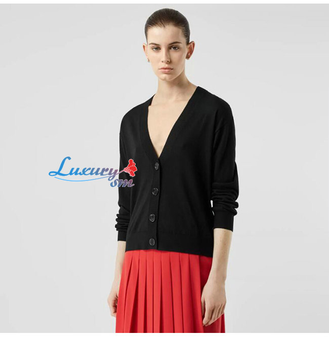 BURBERRY-80170121 버버리 블랙 빈티지 체크 디테일 메리노 울 카디건