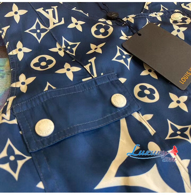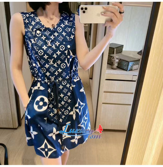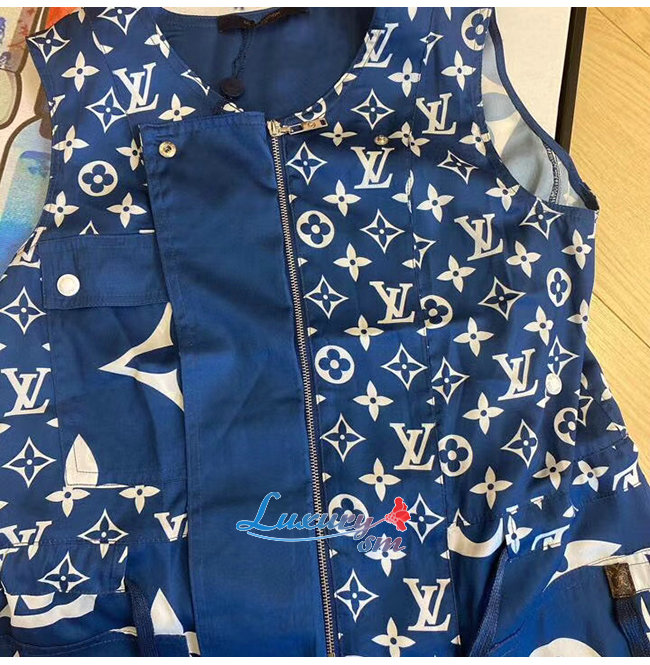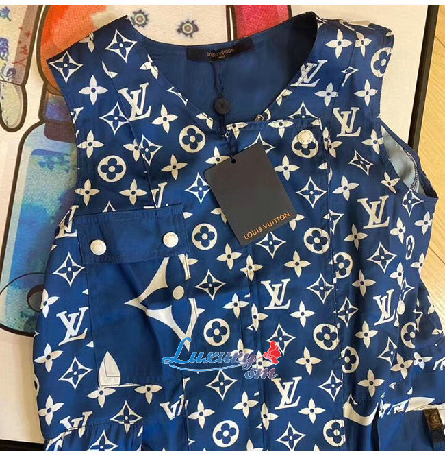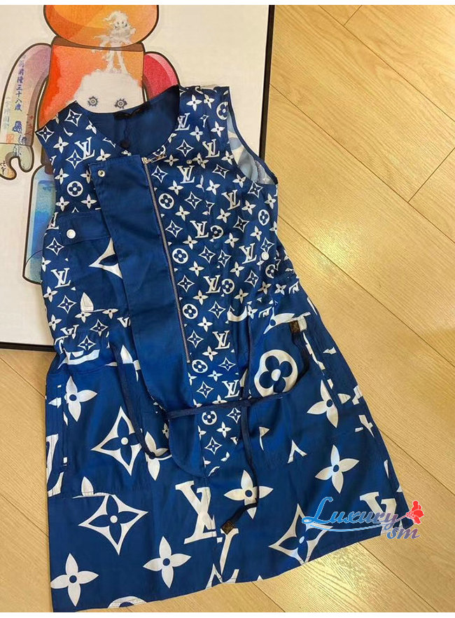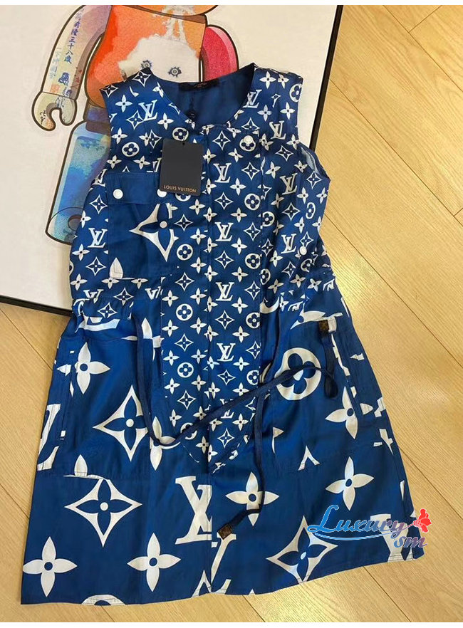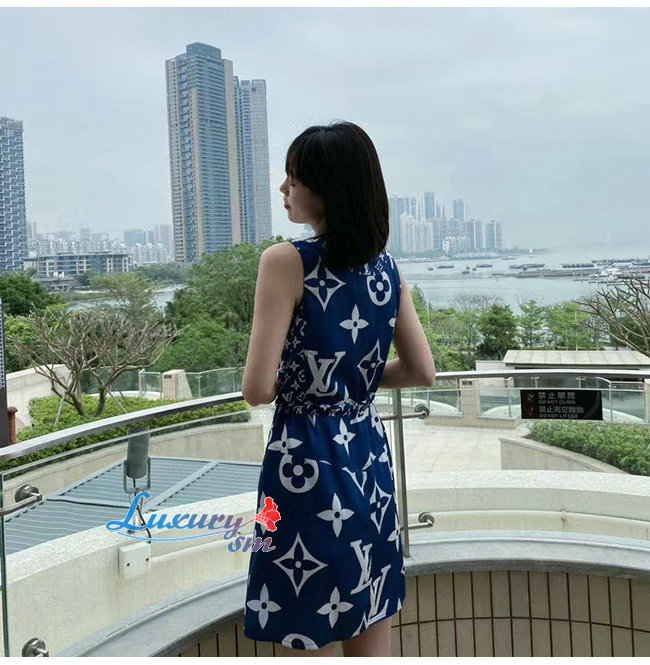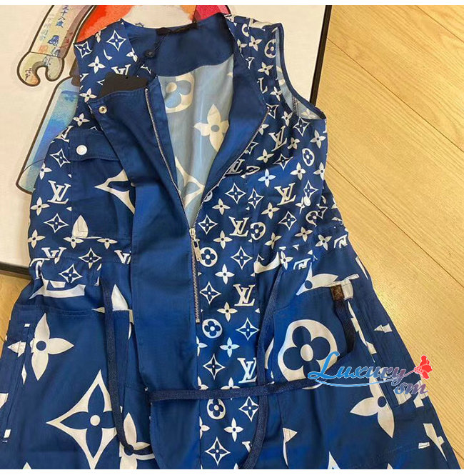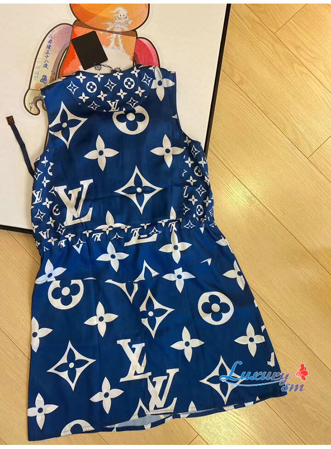 LOUIS VUITTON-1A7SEQ 루이비통 블루 LV 에스칼 슬리브리스 드레스