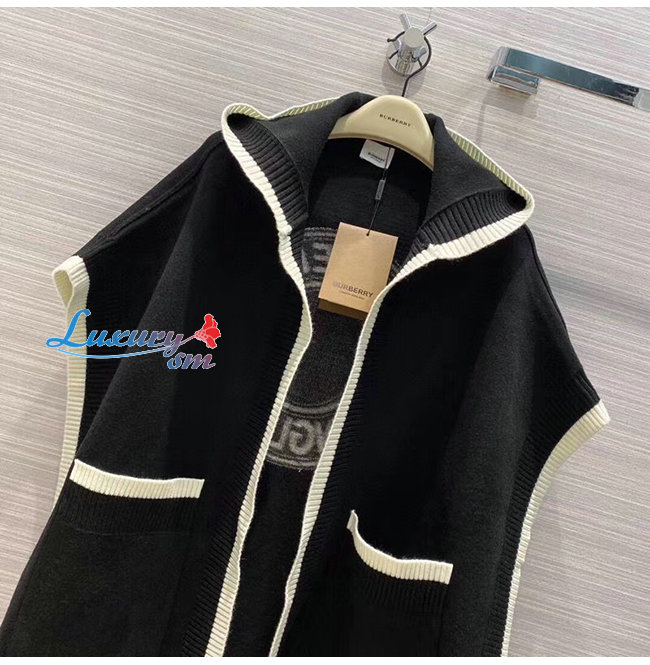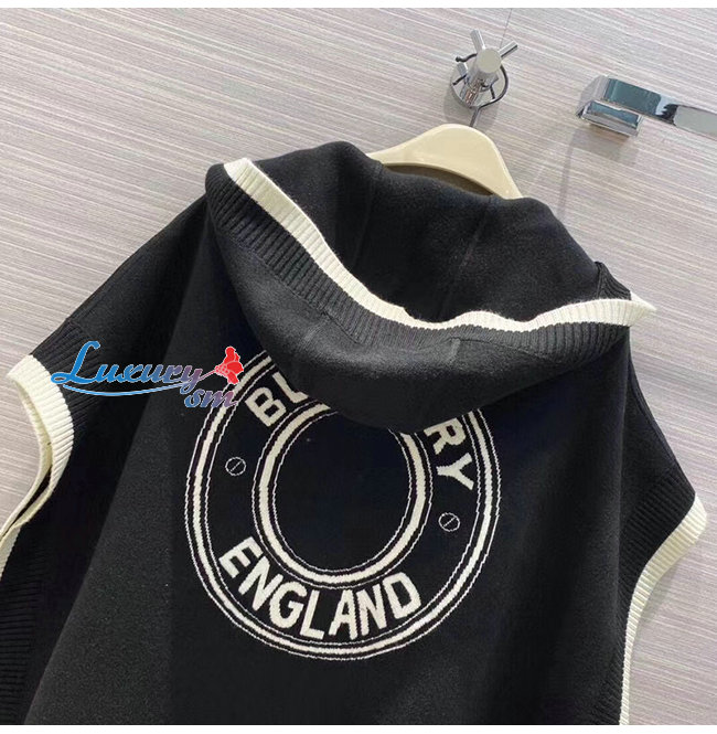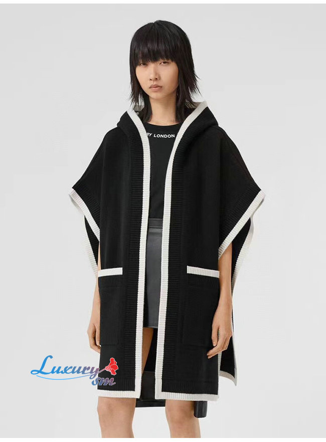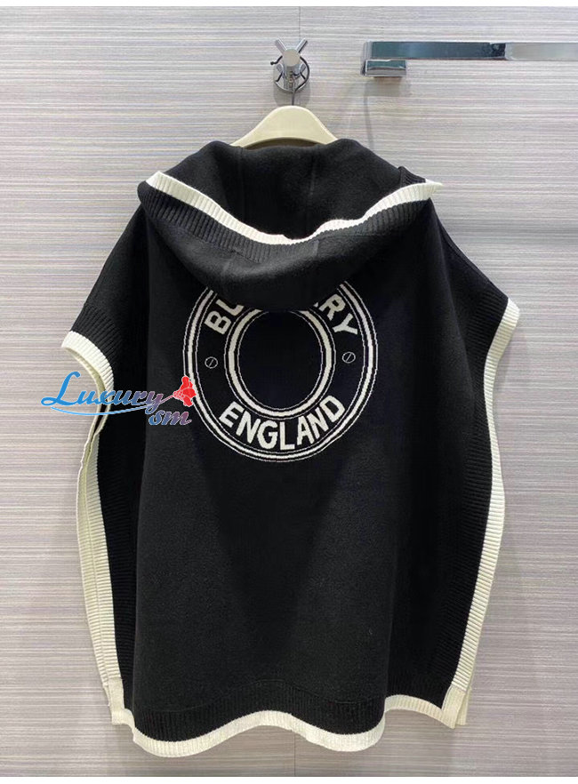 BURBERRY-80315441 버버리 블랙 로고 그래픽 울 캐시미어 자카드 후드 케이프