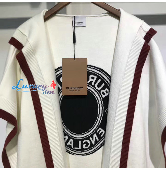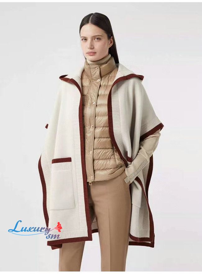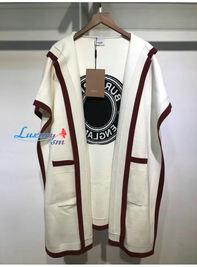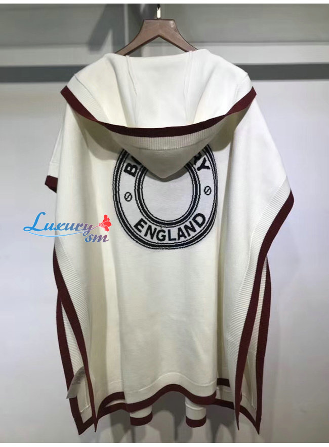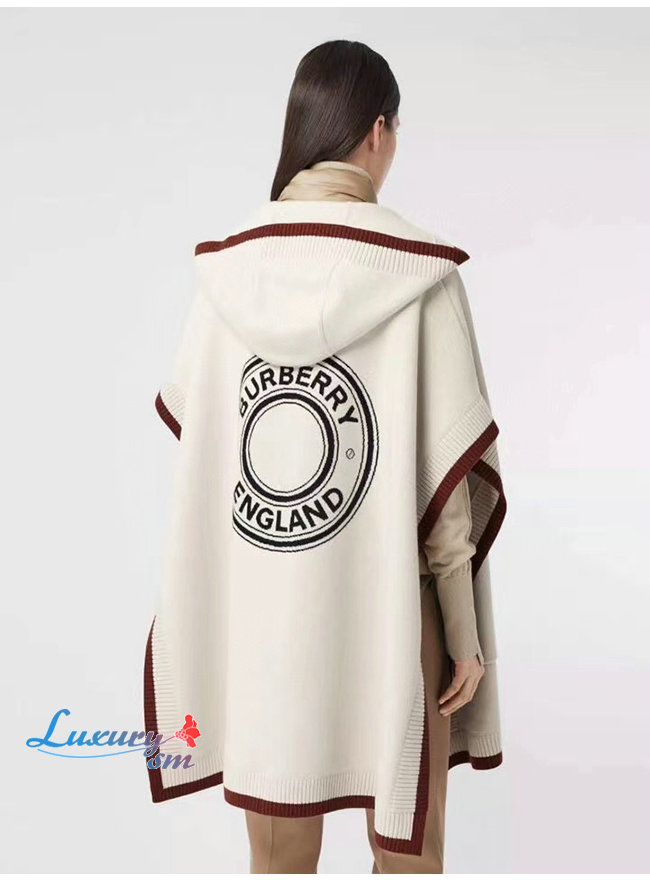 BURBERRY-80290001 버버리 화이트 로고 그래픽 울 캐시미어 자카드 후드 케이프
