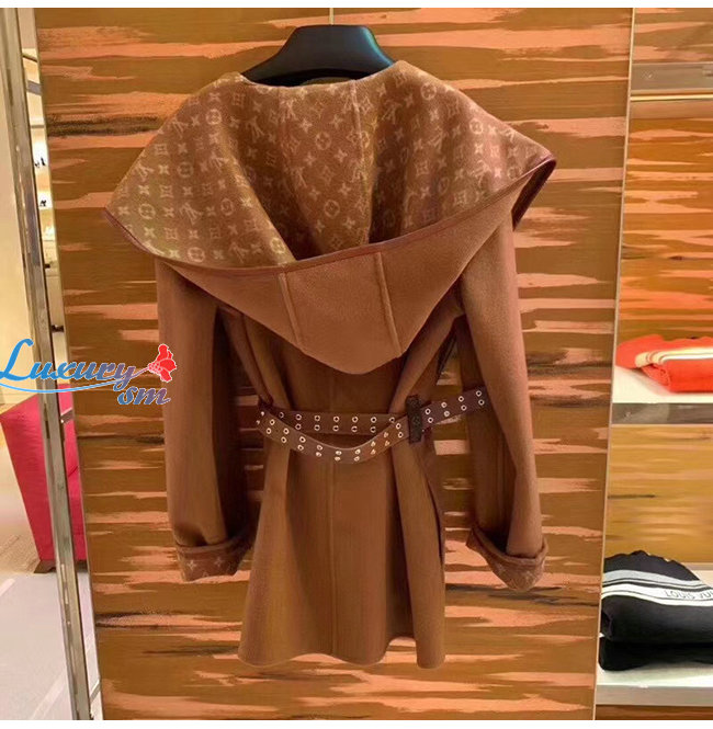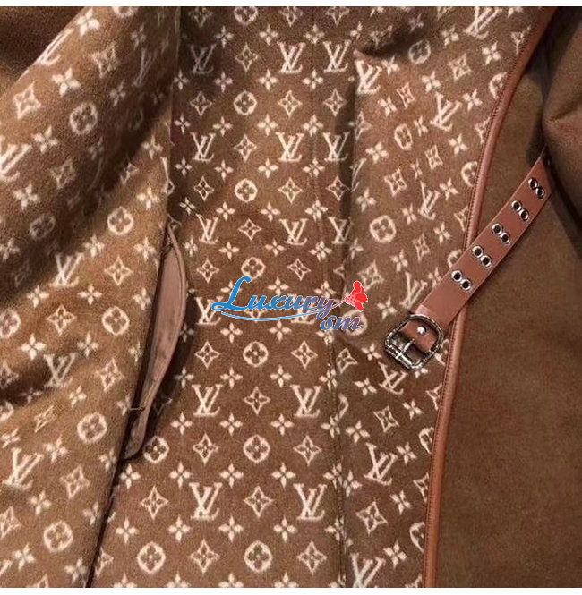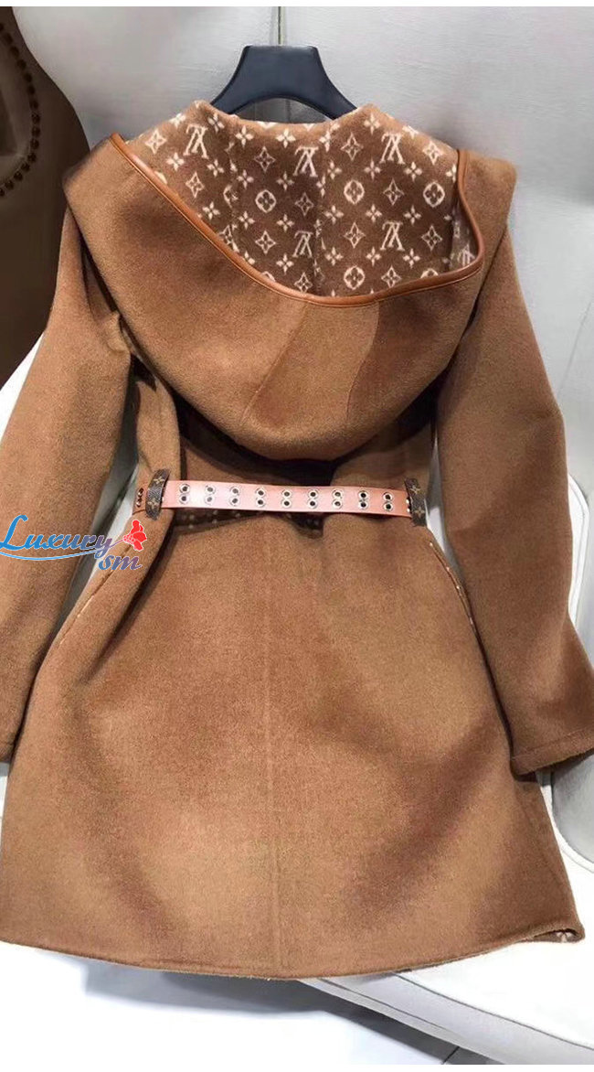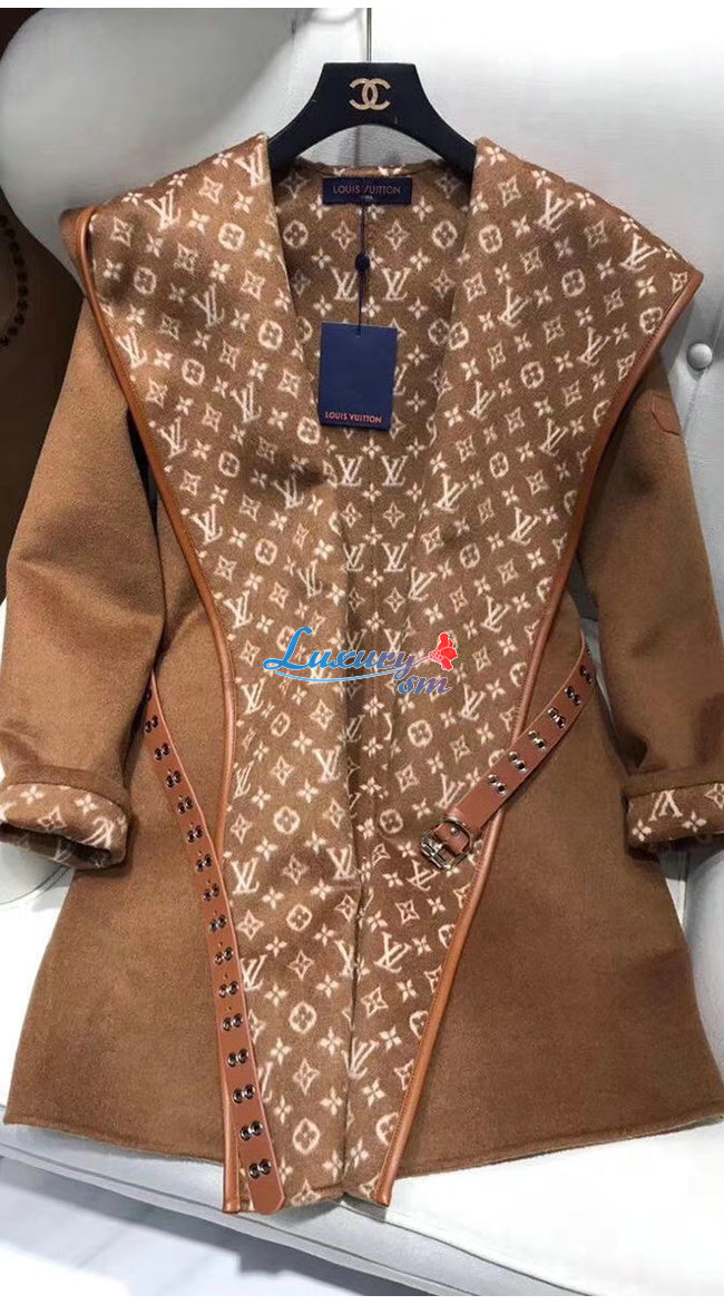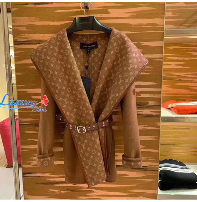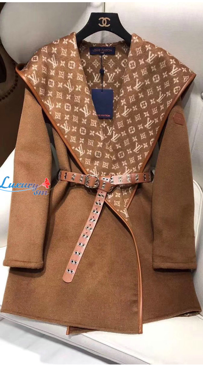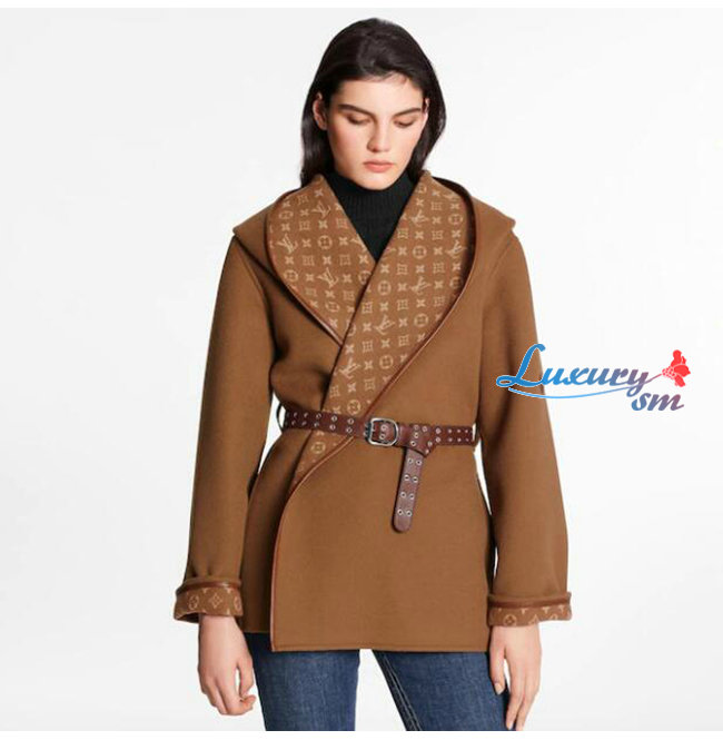 LOUIS VUITTON-1A825Z 루이비통 브라운 울 실크 위드 모노그램 디테일 랩 피코트