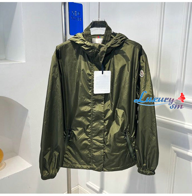MONCL**-03296 몽클레어 카키 나일론 바람막이 후드 재킷 여성용