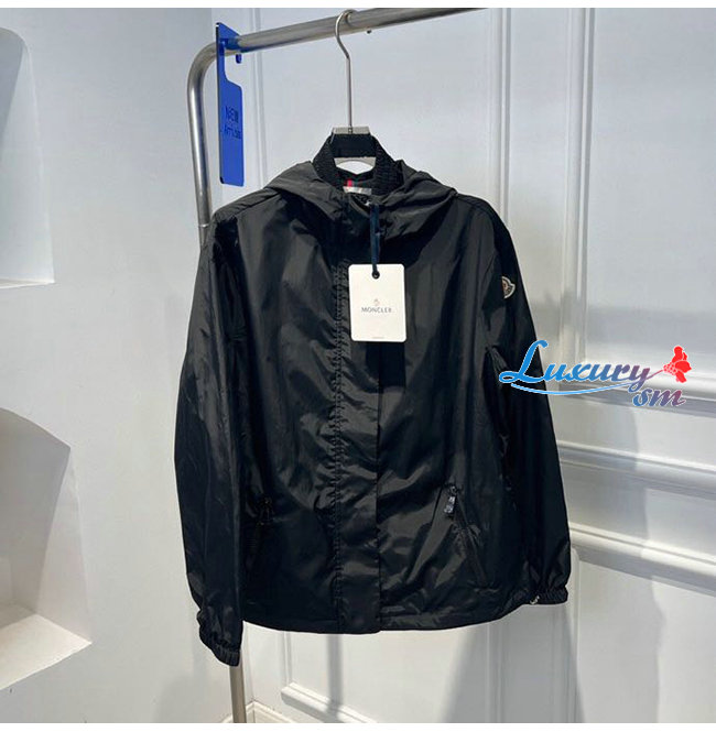 MONCL**-03297 몽클레어 블랙 나일론 바람막이 후드 재킷 여성용