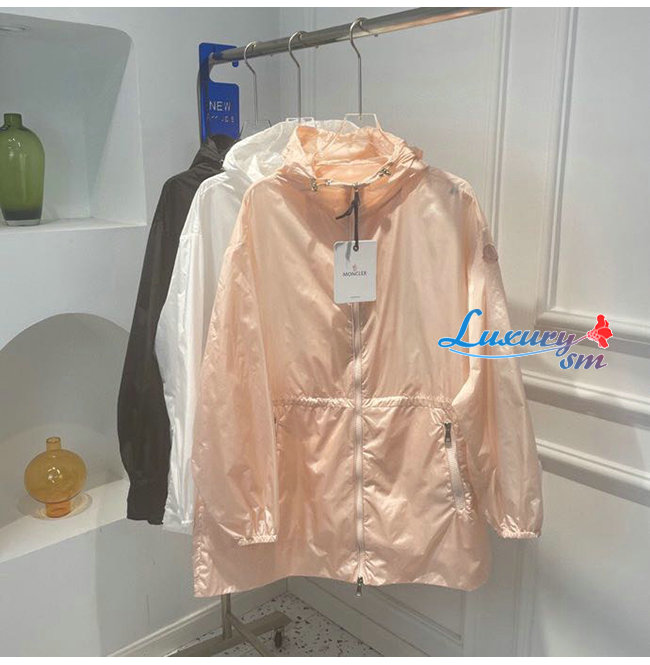 MONCL**-03298 몽클레어 핑크 나일론 바람막이 후드 재킷 여성용