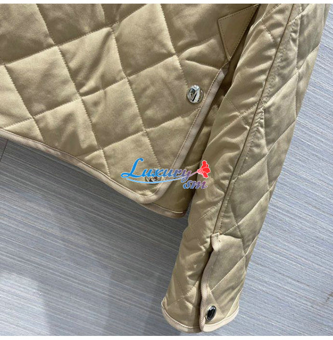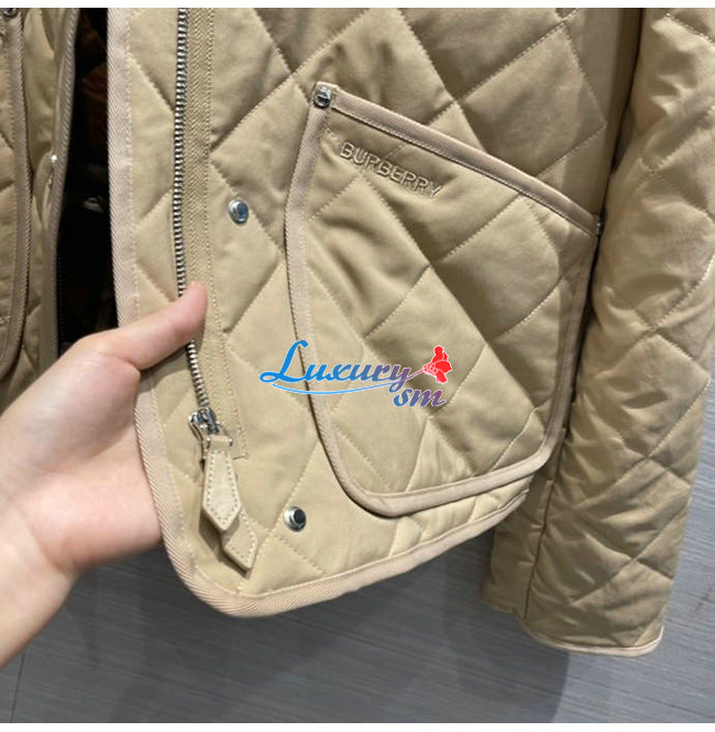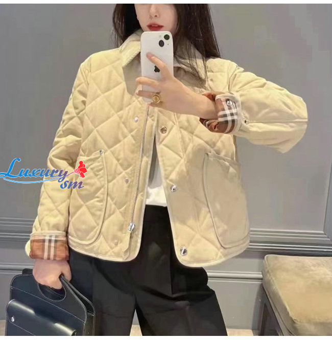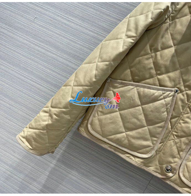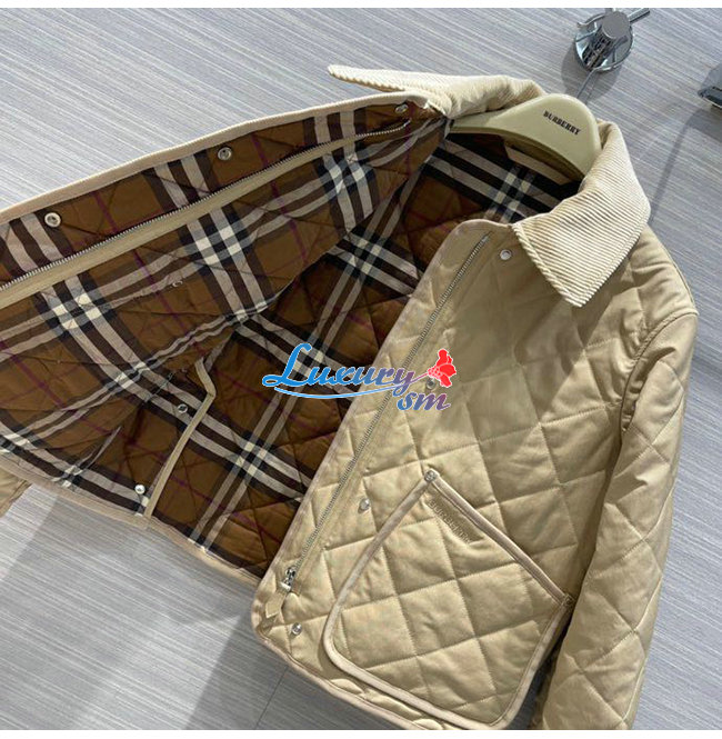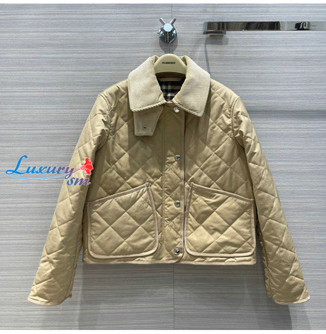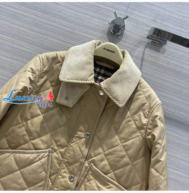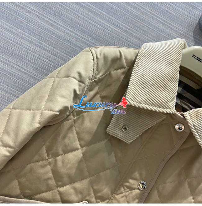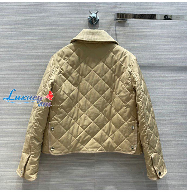 BURBERRY-80565751 버버리 베이지 코듀로이 칼라 다이아몬드 퀼팅 크롭 반 재킷 여성용