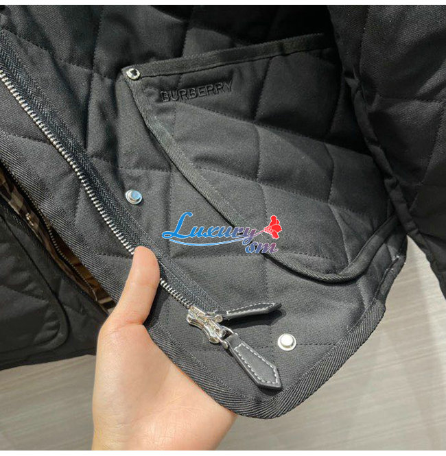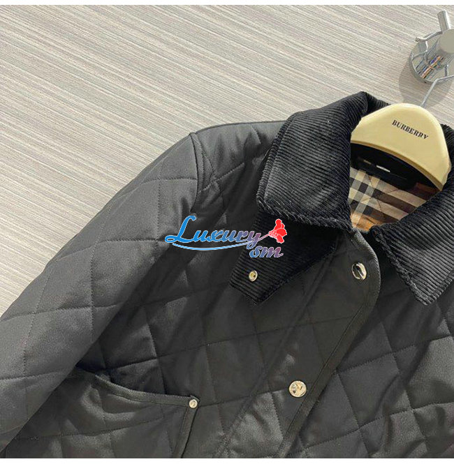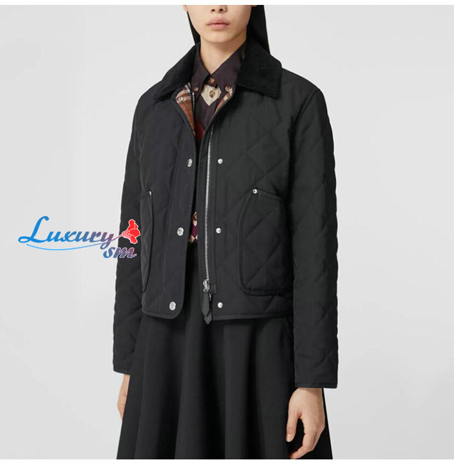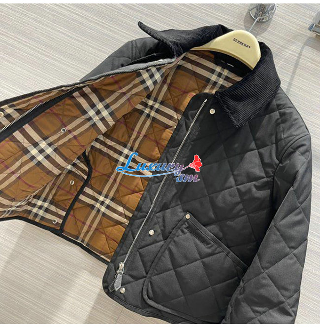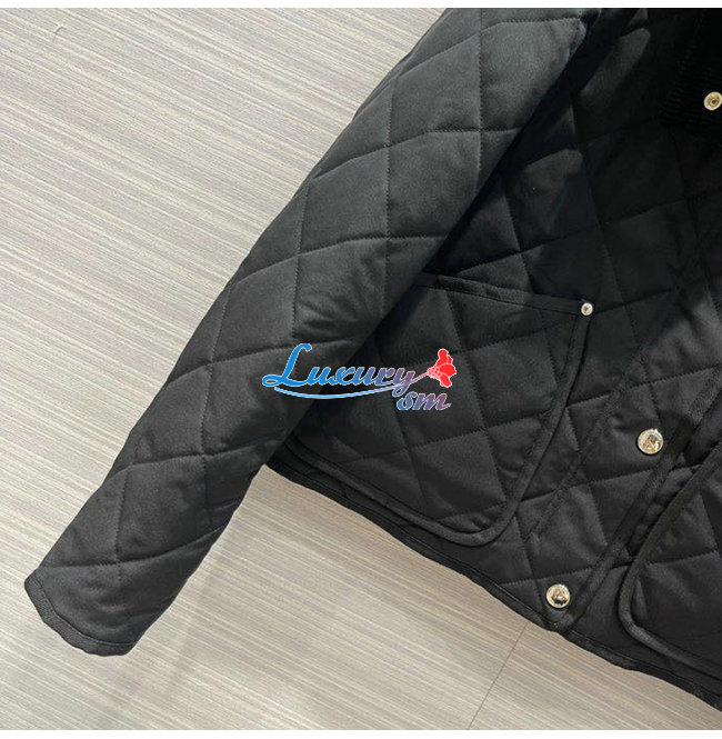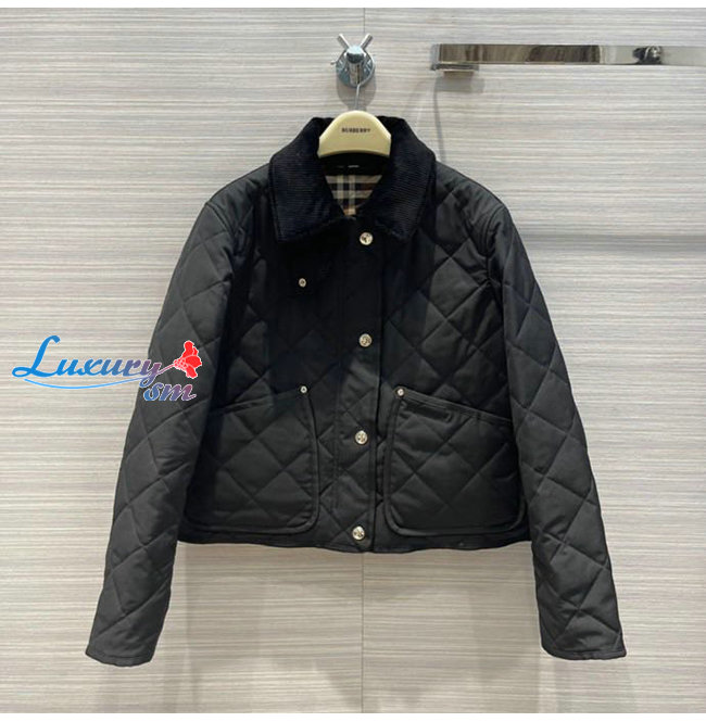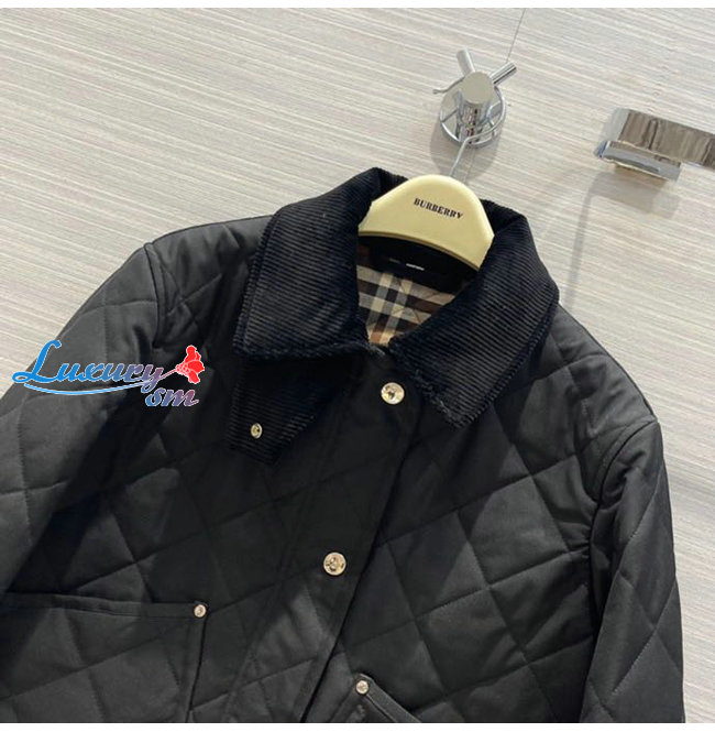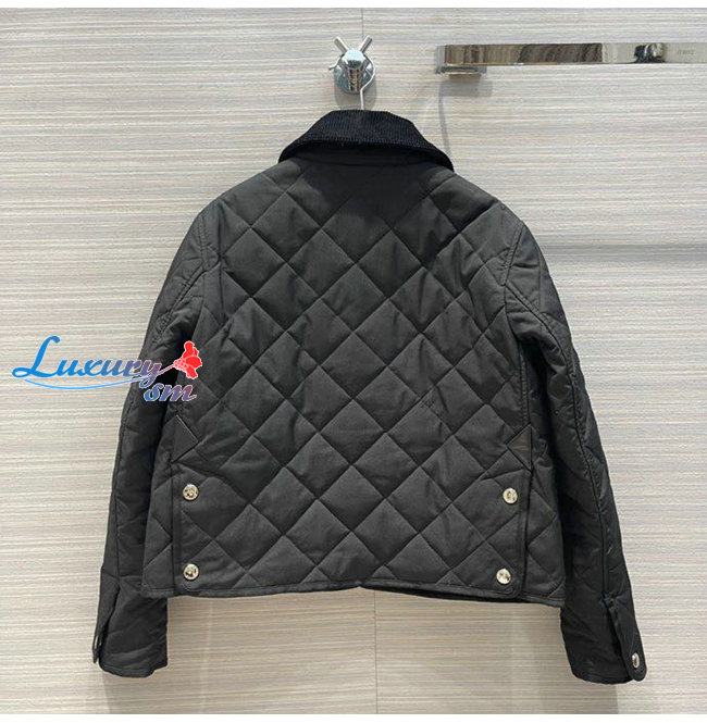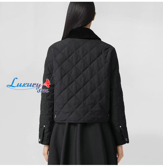 BURBERRY-80551311 버버리 블랙 코듀로이 칼라 다이아몬드 퀼팅 크롭 반 재킷 여성용