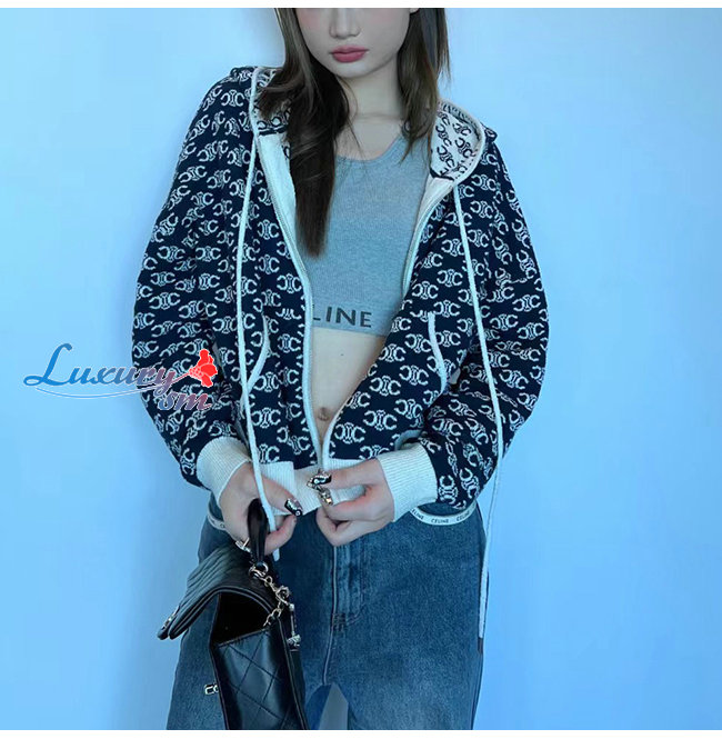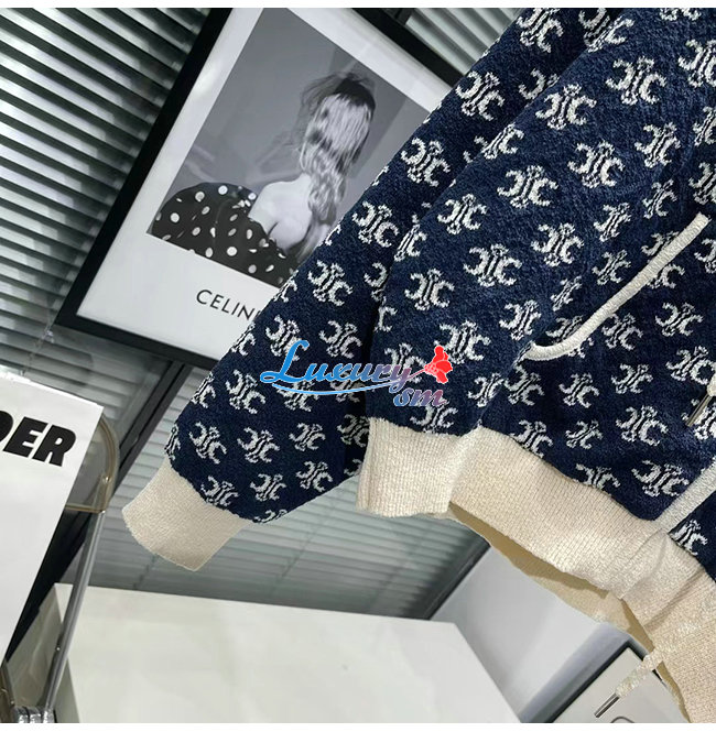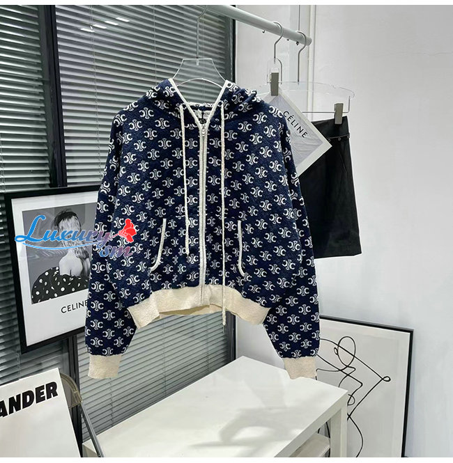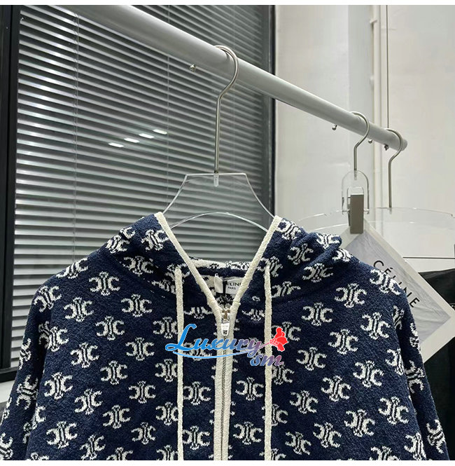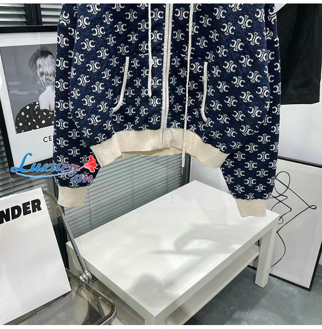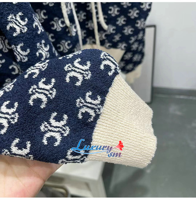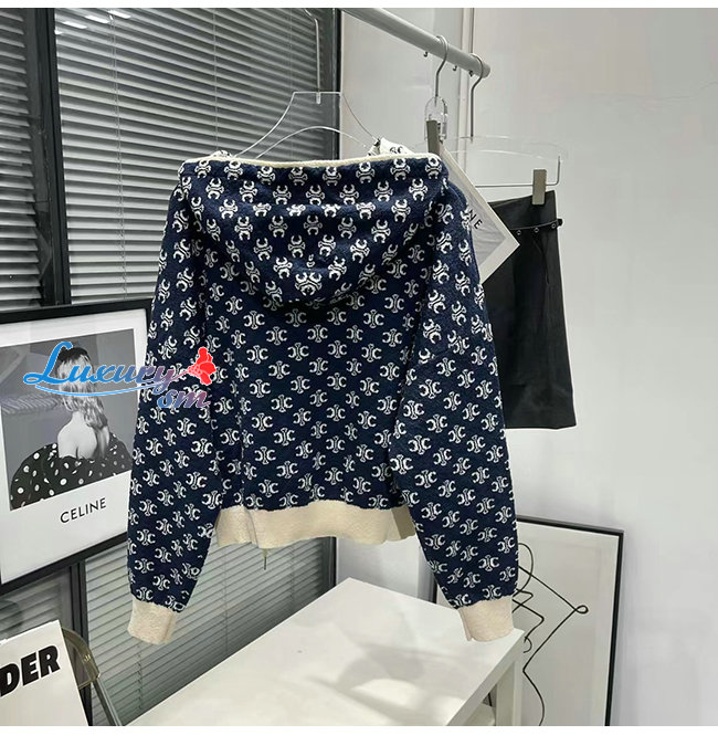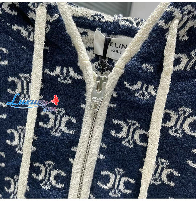 CELINE-101810 셀린느 네이비 니트 코튼 후드 재킷 여성용