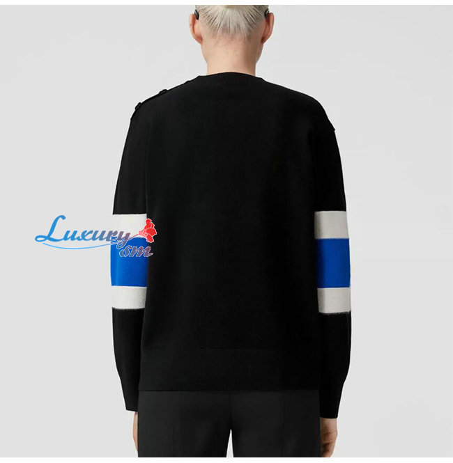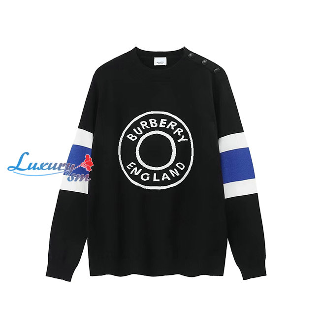 BURBERRY-80583961 버버리 블랙 로고 그래픽 아플리케 울 캐시미어 스웨터