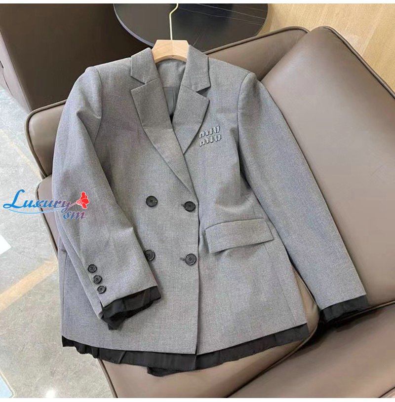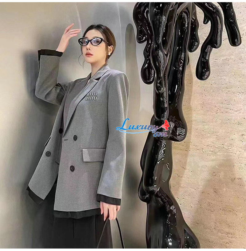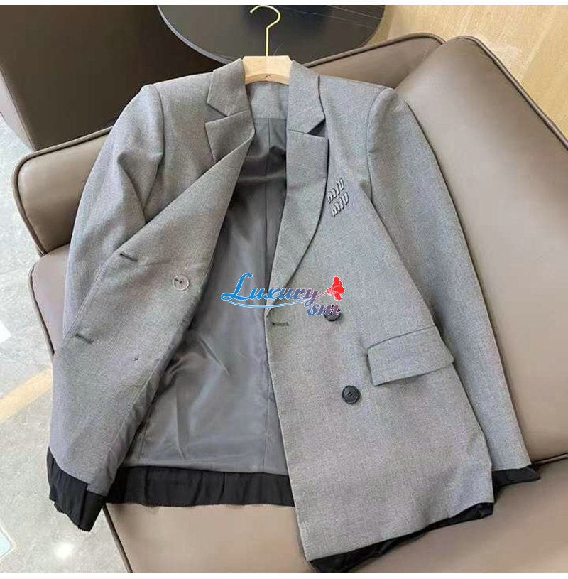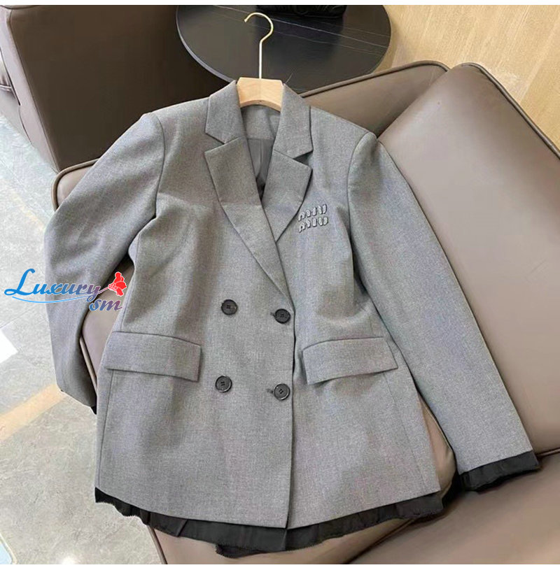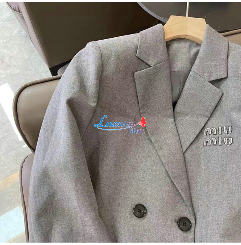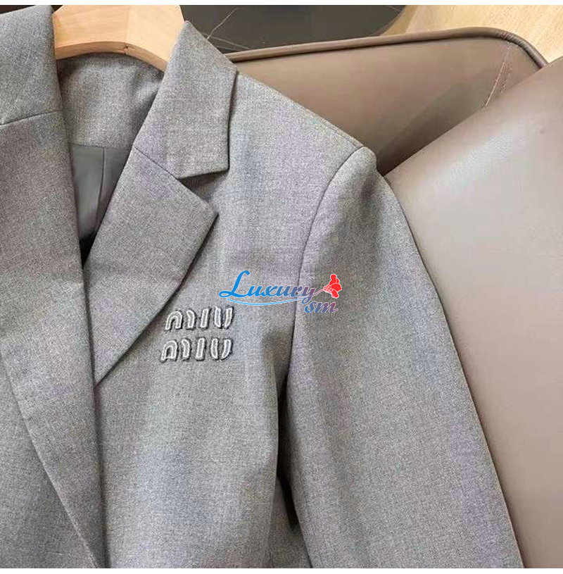 [스페셜오더]MIUMIU-02122 미우미우 그레이 로고 아플리케 장식 재킷 여성용