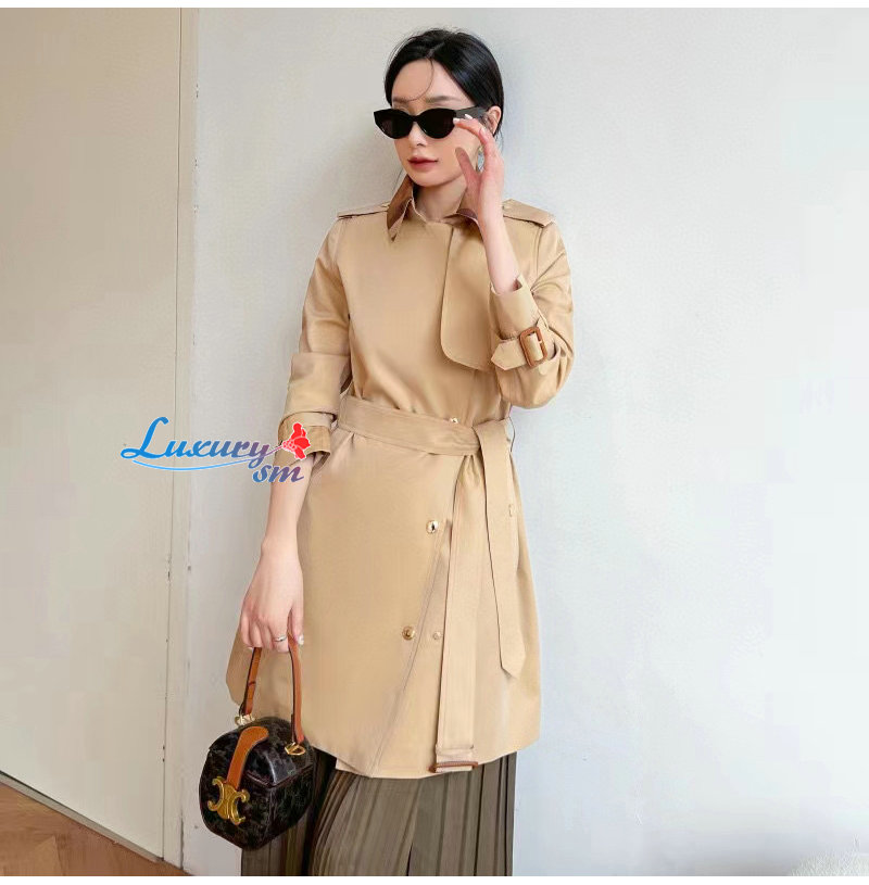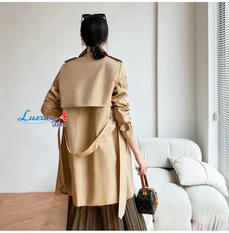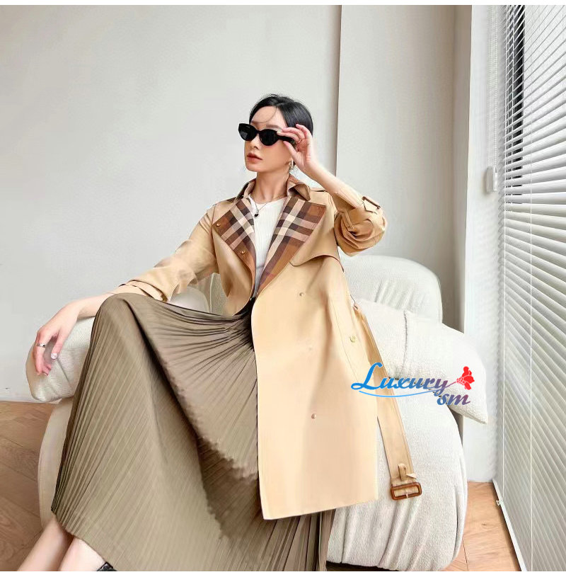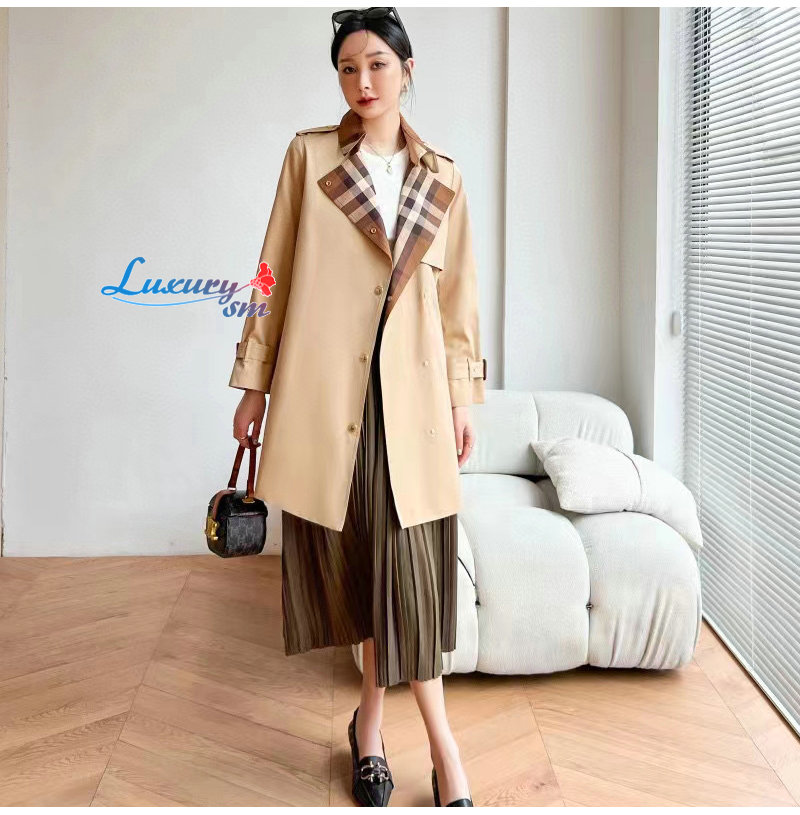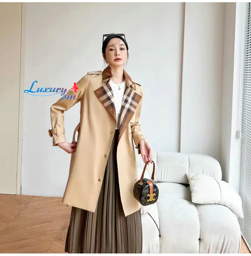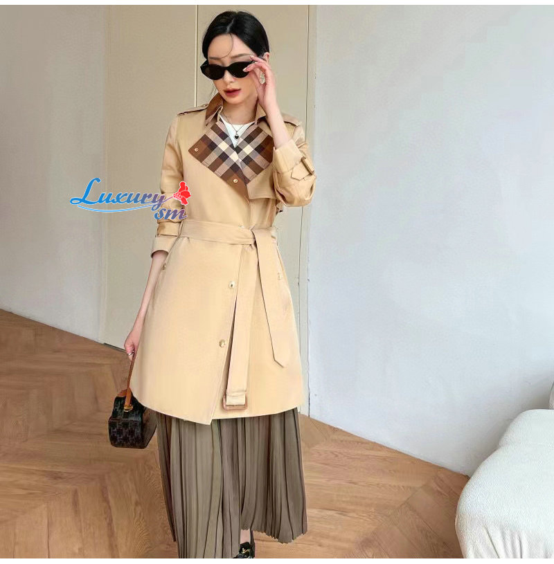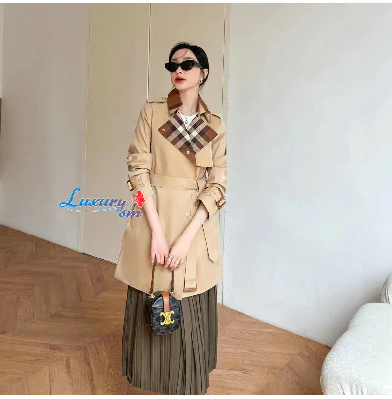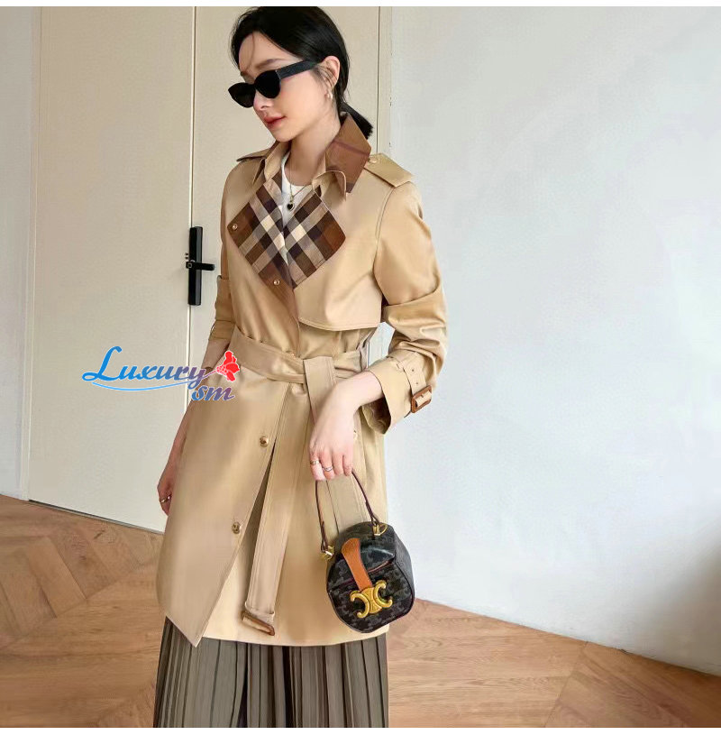 BURBERRY-80649351 버버리 캐러멜 체크 패널 코튼 개버딘 트렌치코트 여성용 가격 : 340,000원