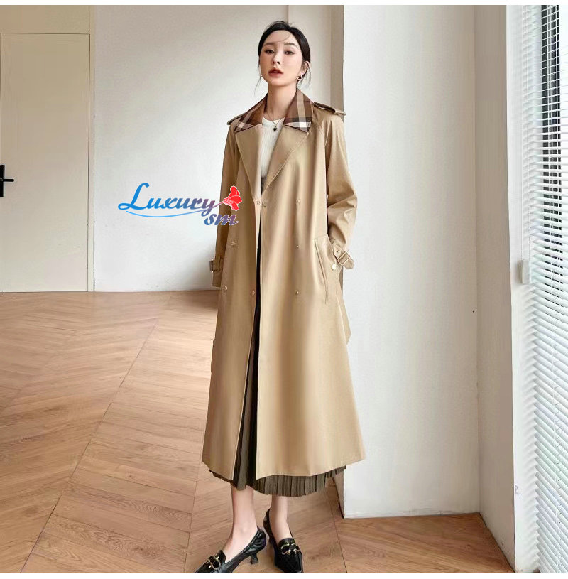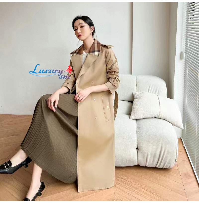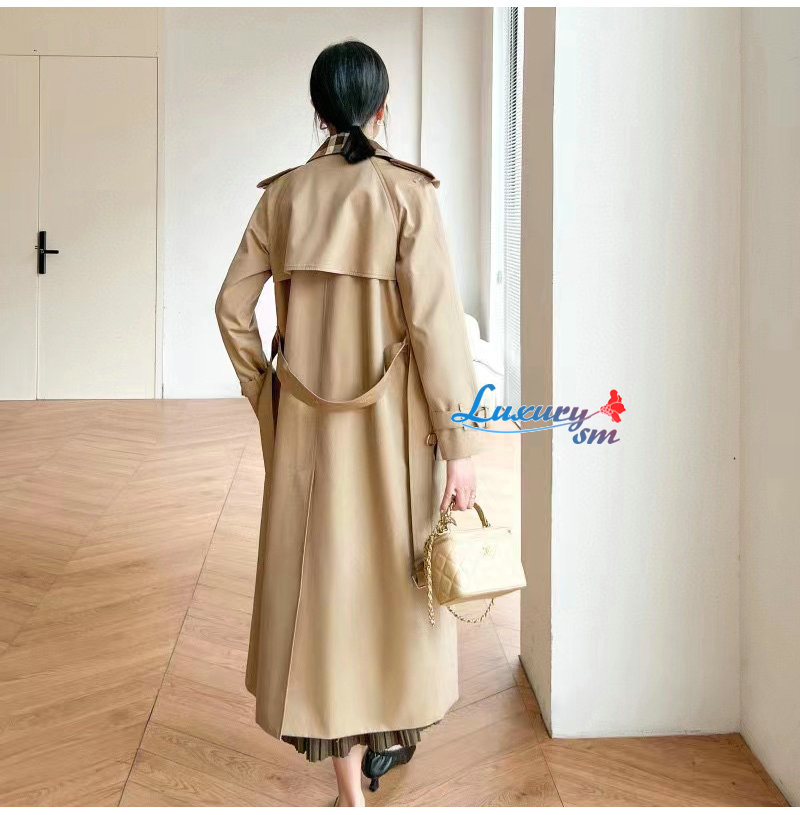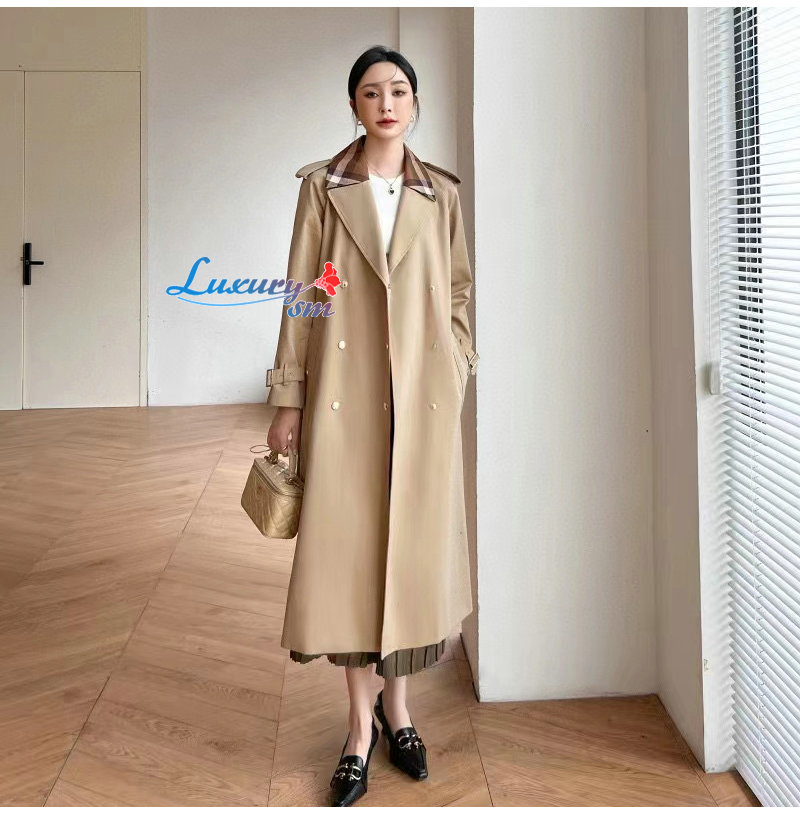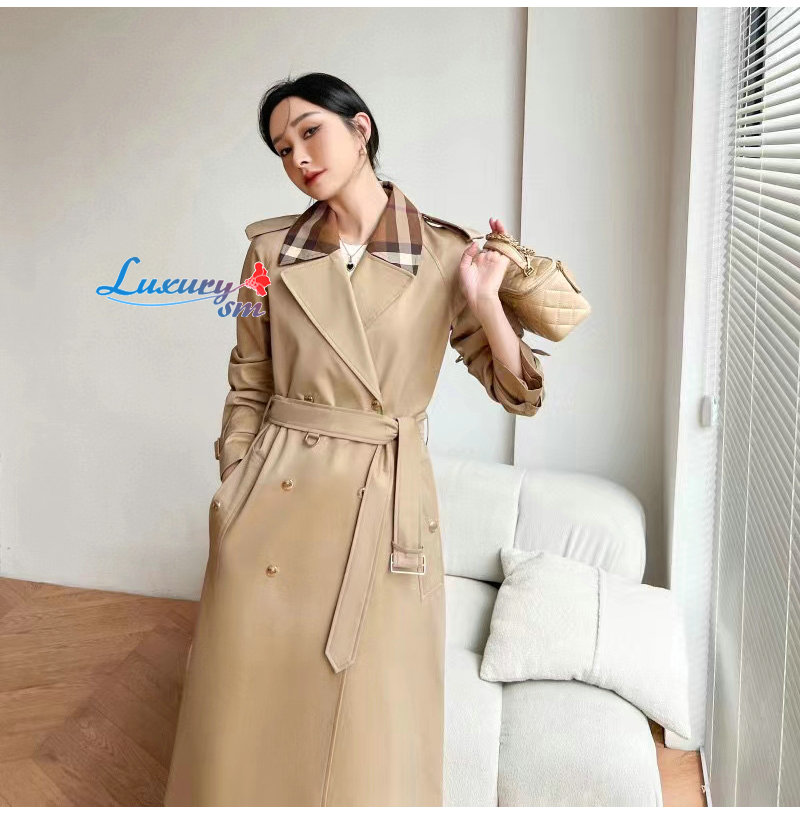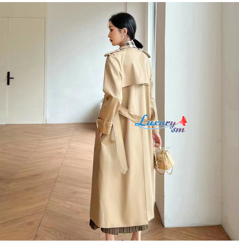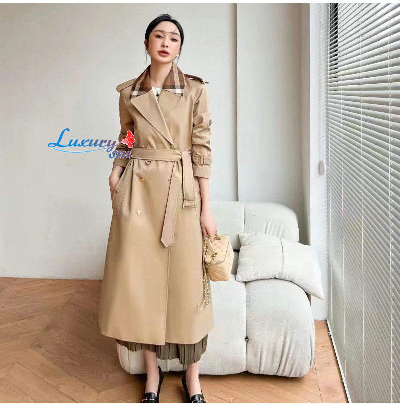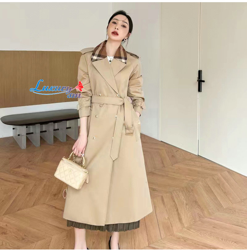 BURBERRY-02161 버버리 베이지 체크 트리밍 트렌치코트 여성용