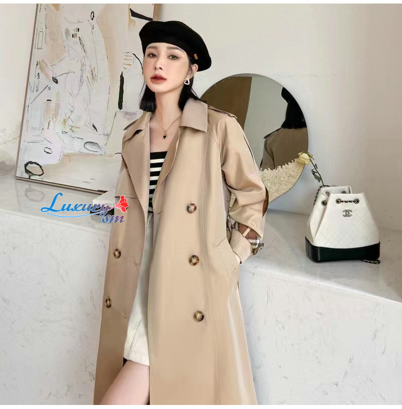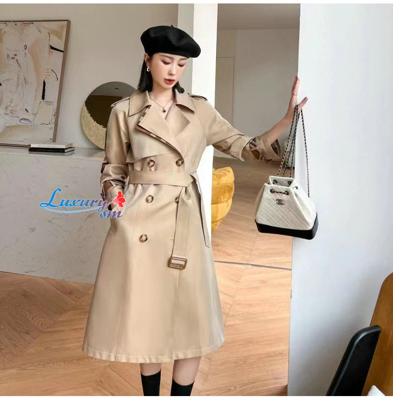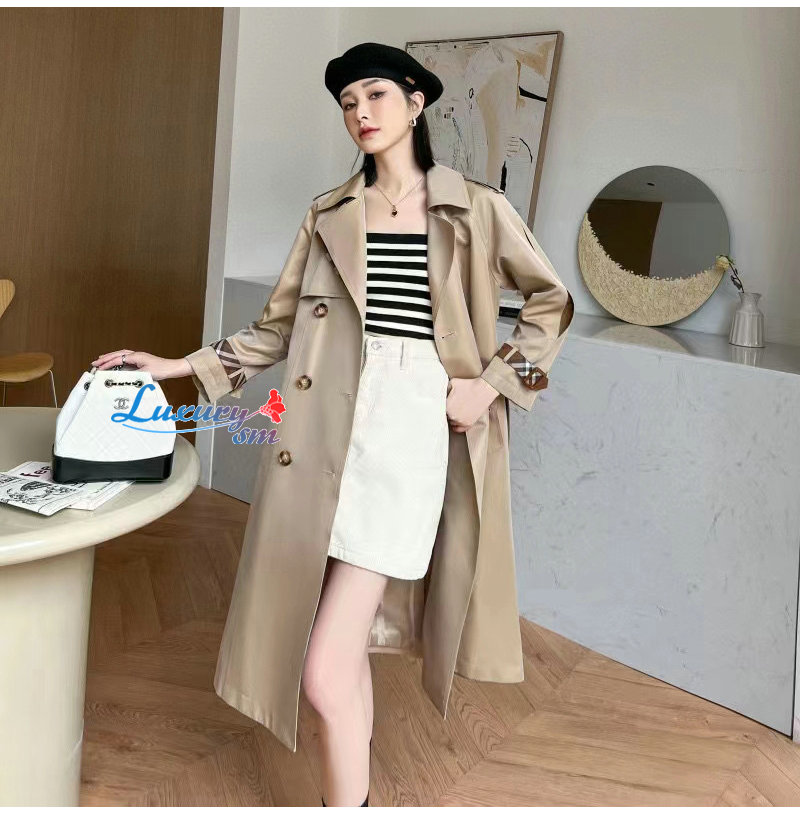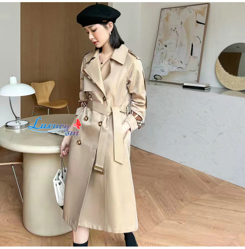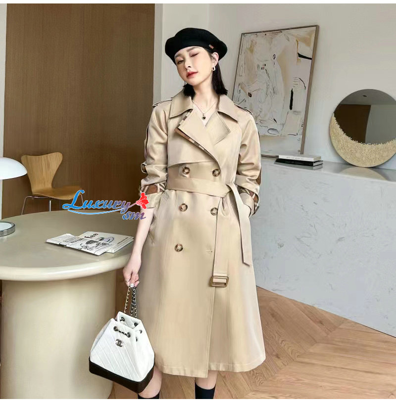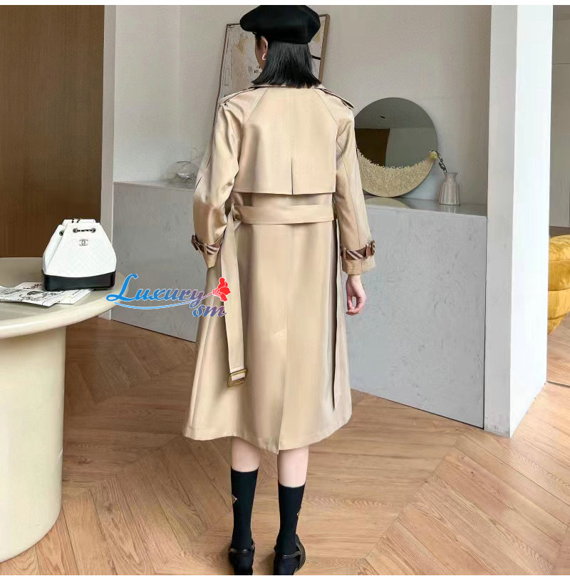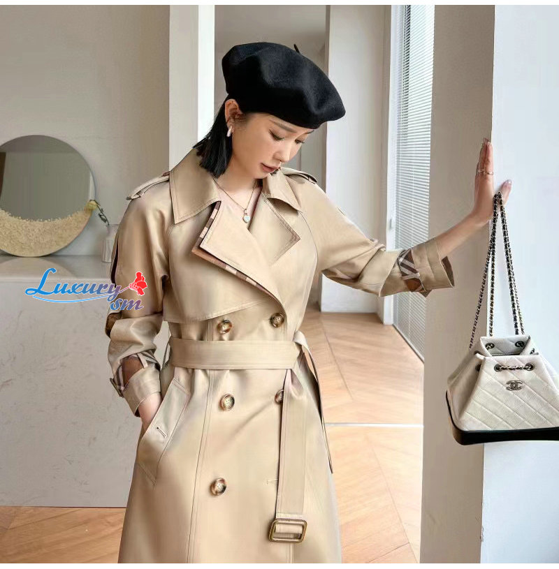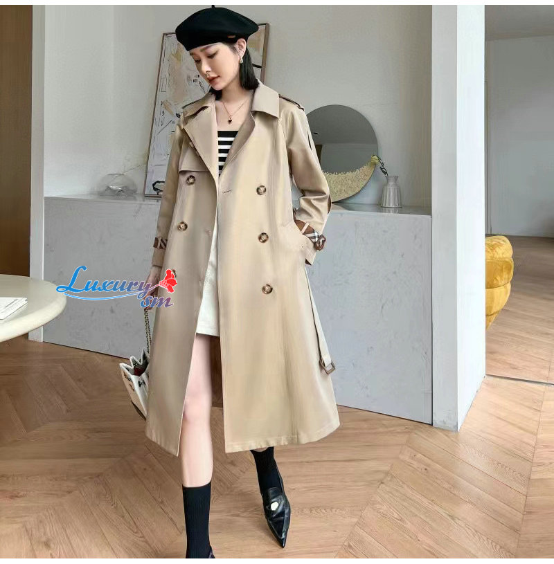 BURBERRY-02162 버버리 베이지 체크 트리밍 트렌치코트 여성용