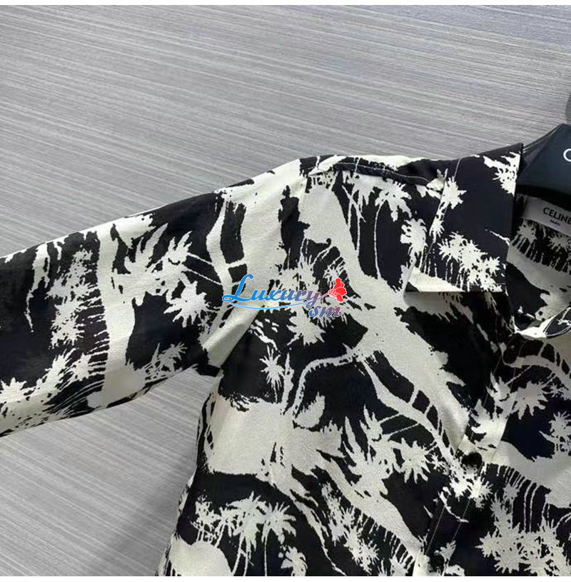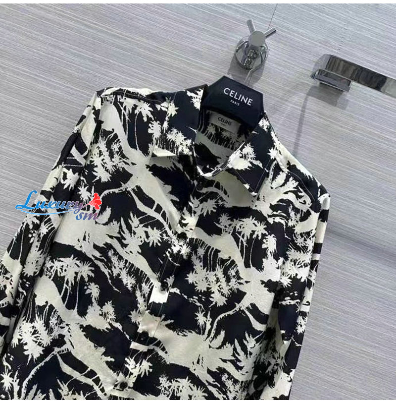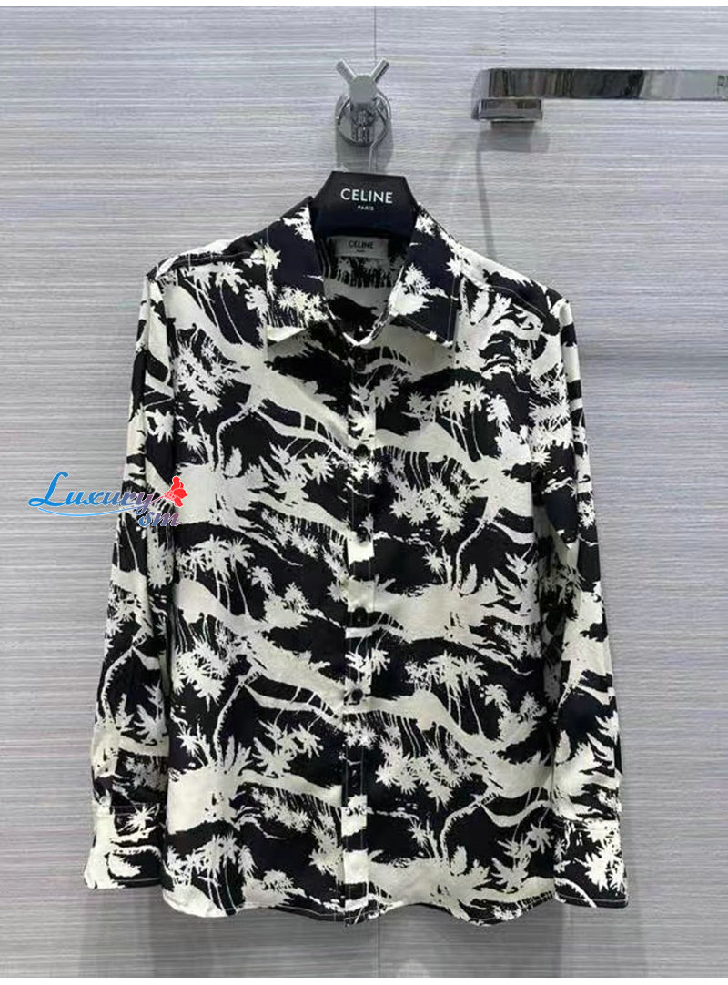 CELINE-03182 셀린느 아이보리/블랙 프린트 장식 셔츠 여성용