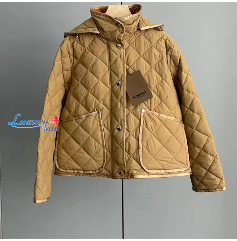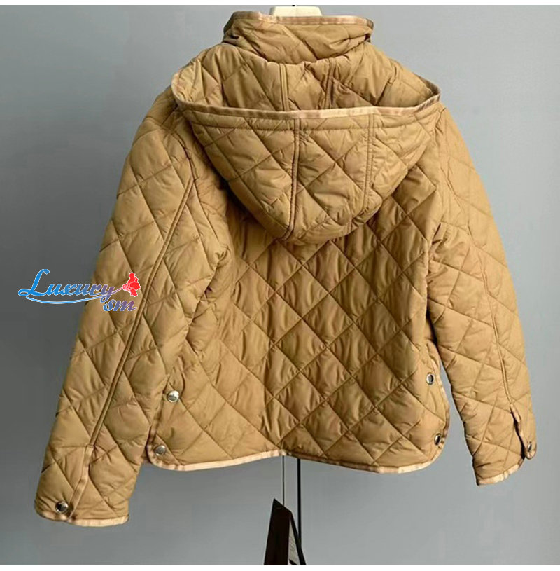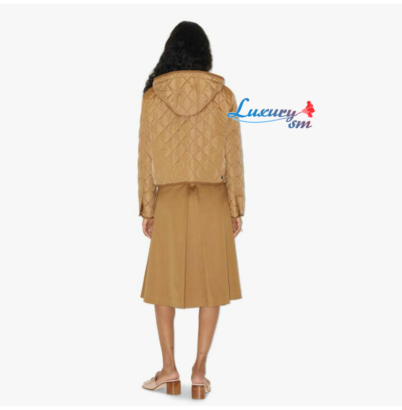 BURBERRY-80709691 버버리 베이지 다이아몬드 퀼팅 나일론 크롭 재킷 여성용