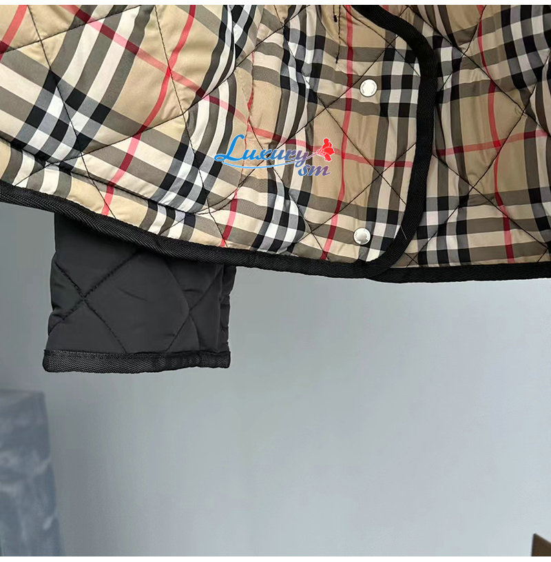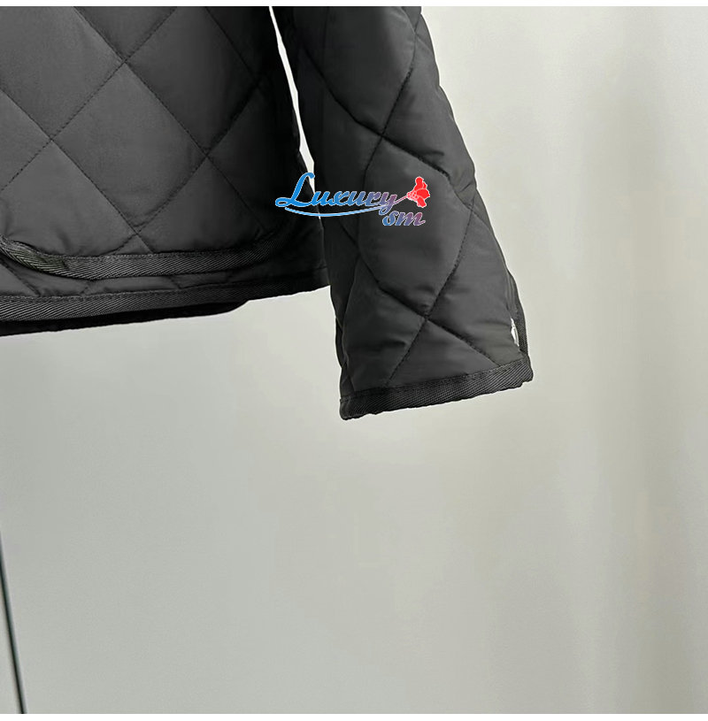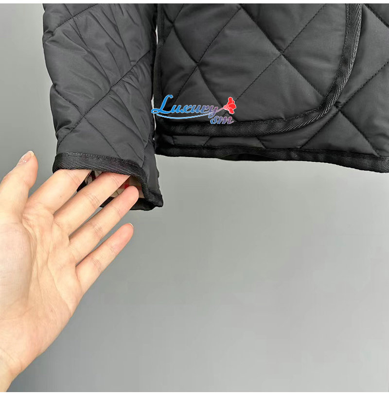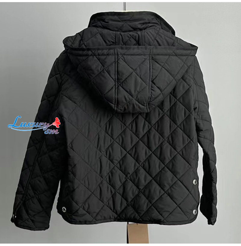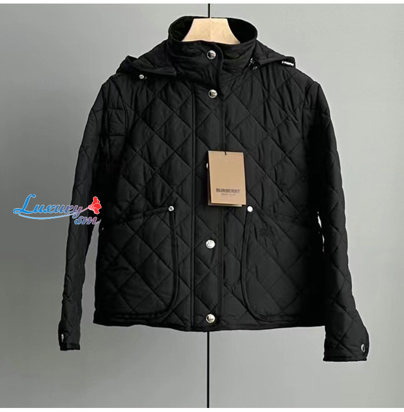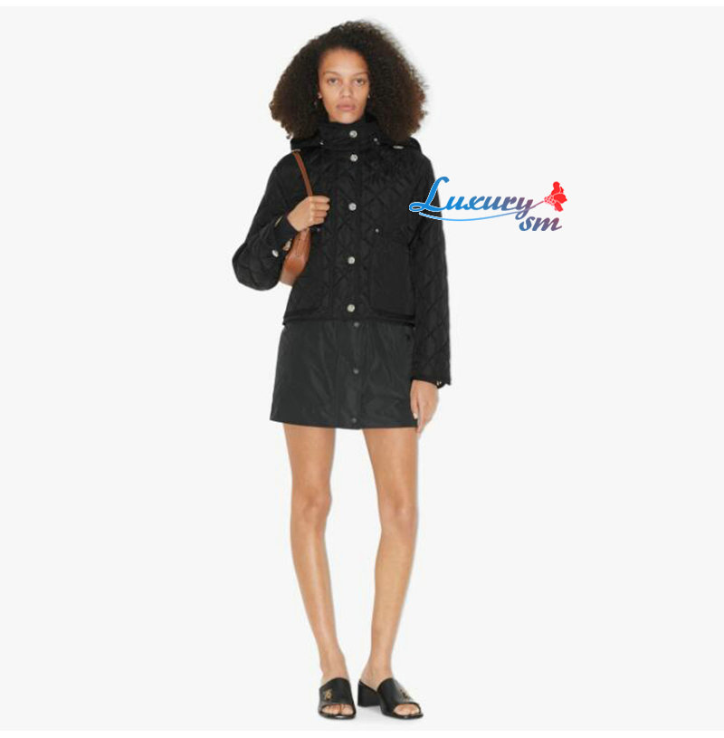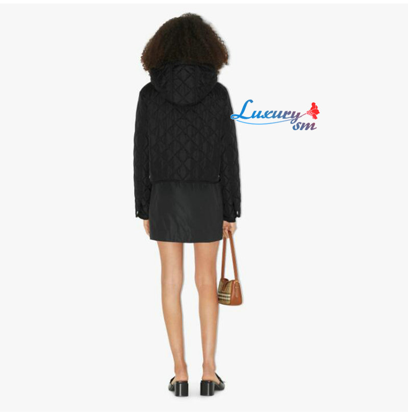BURBERRY-80727981 버버리 블랙 다이아몬드 퀼팅 나일론 크롭 재킷 여성용
