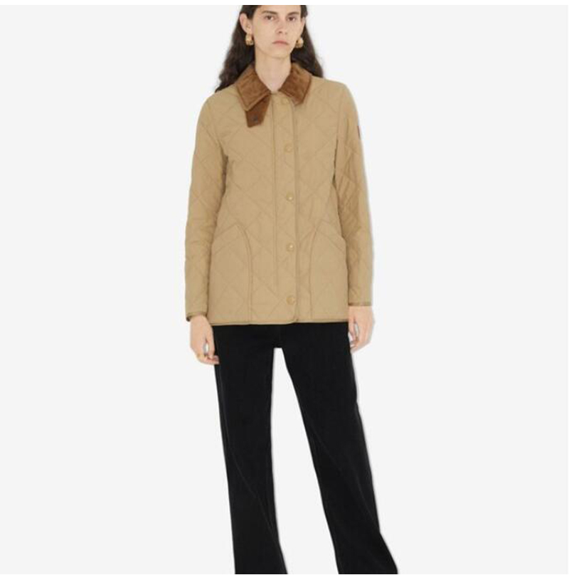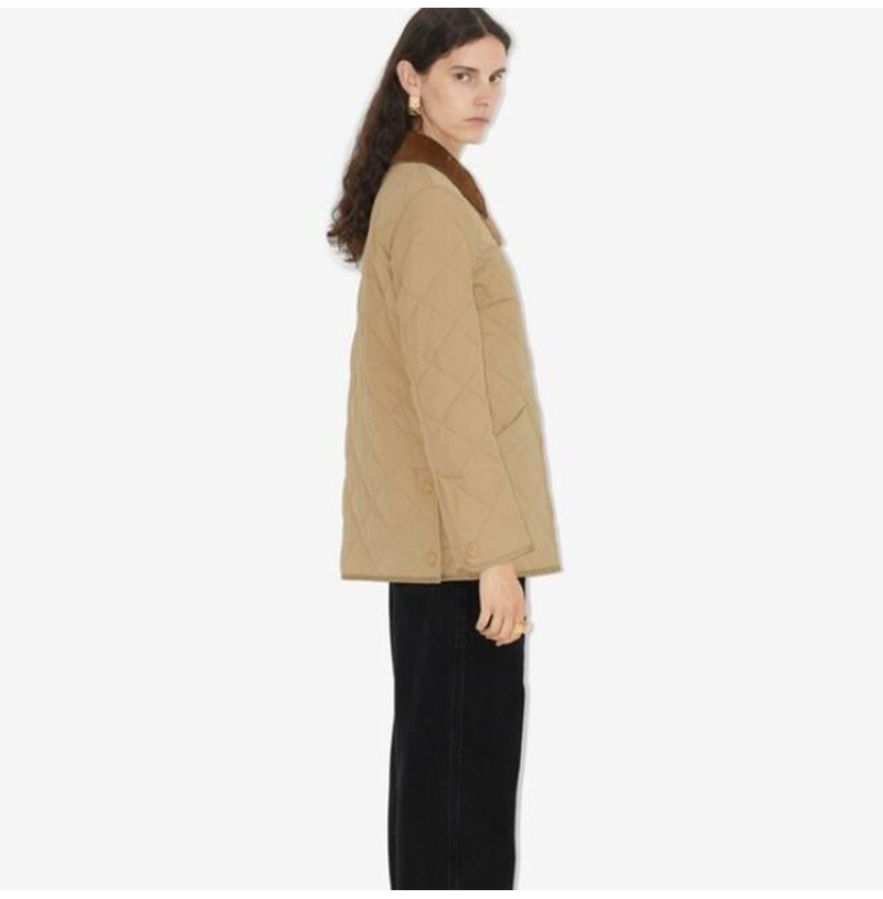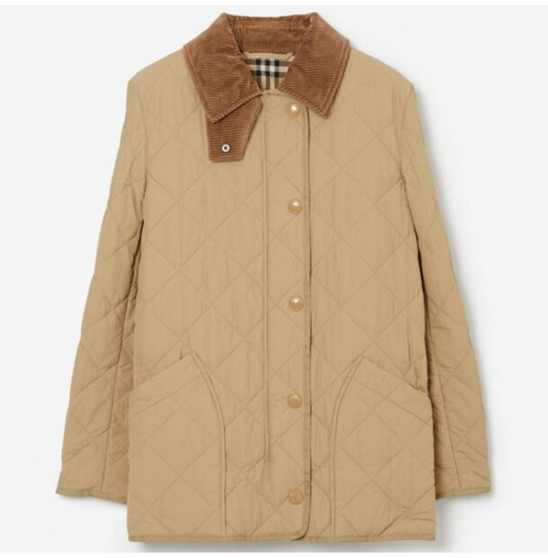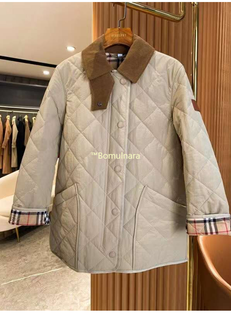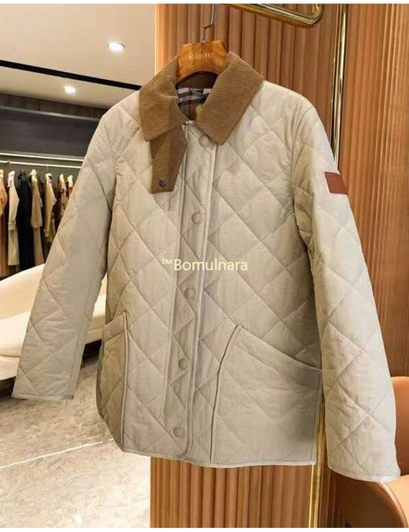 BURBERRY-80214 버버리 허니 코듀로이 다이아몬드 퀼팅 반 재킷 여성용
