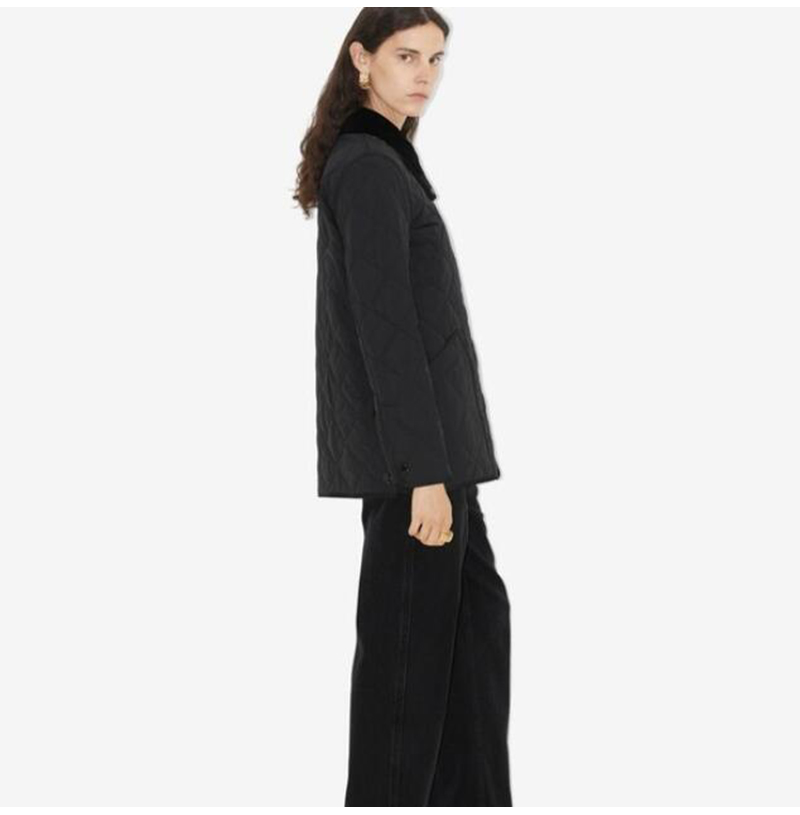 BURBERRY-80217 버버리 블랙 코듀로이 다이아몬드 퀼팅 반 재킷 여성용