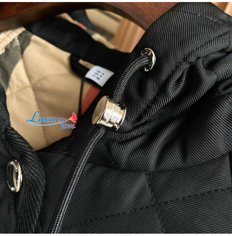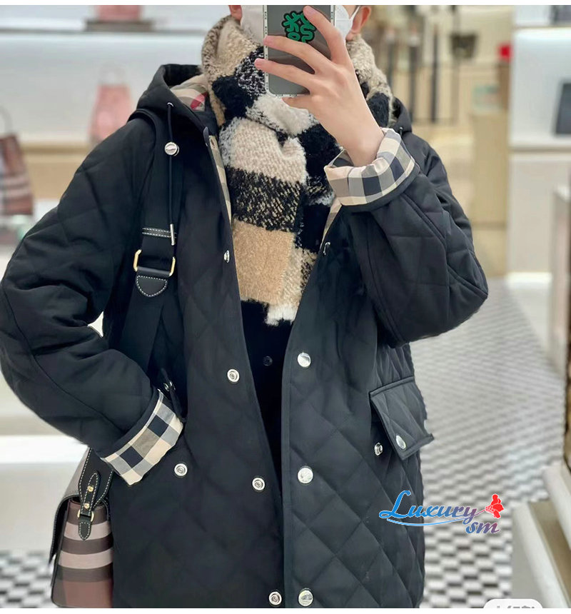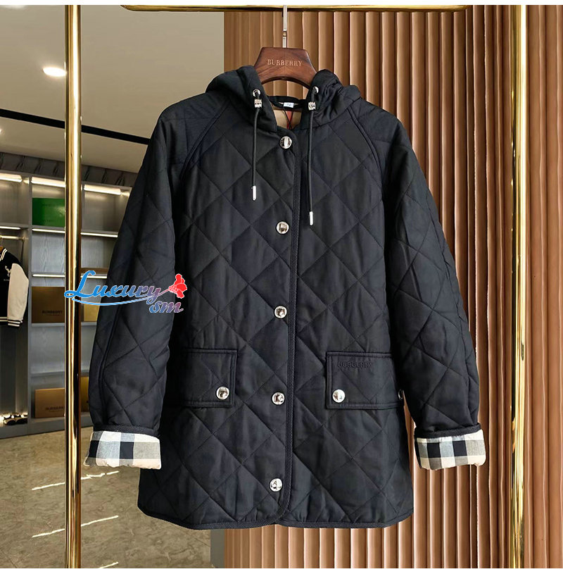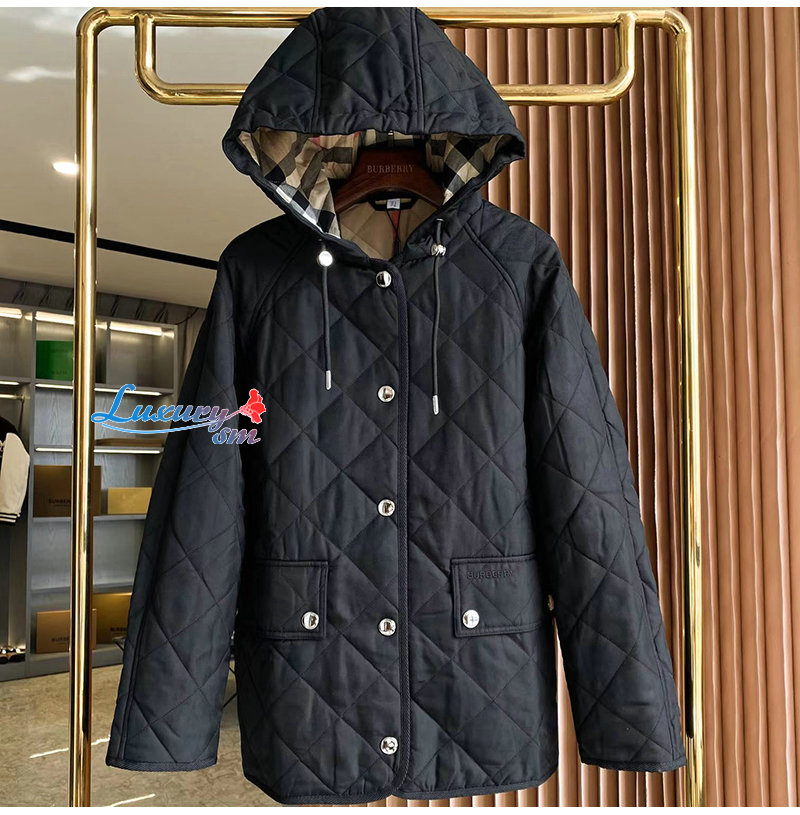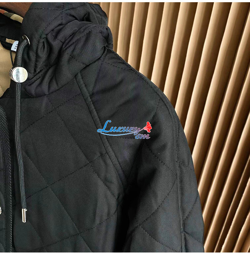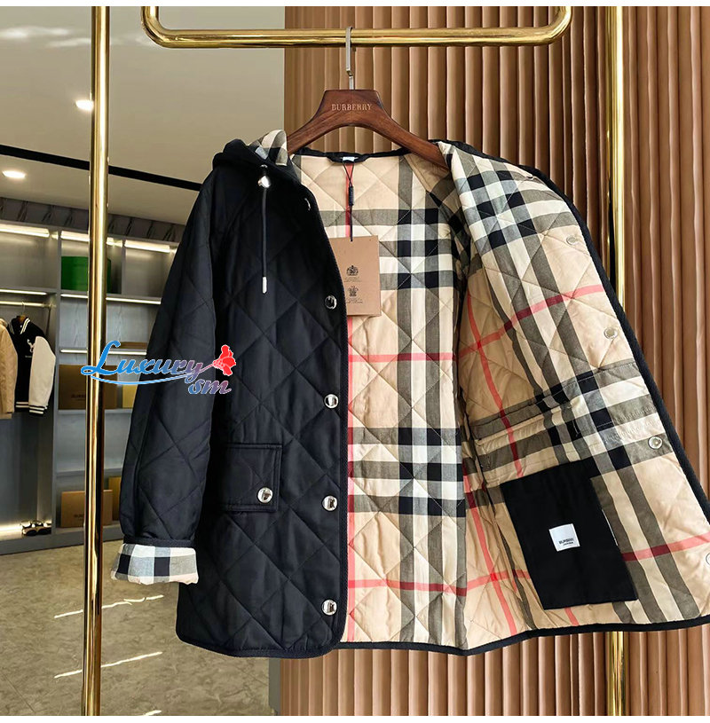 다이아몬드 퀼팅 디자인의 후드 재킷. 버버리 체크