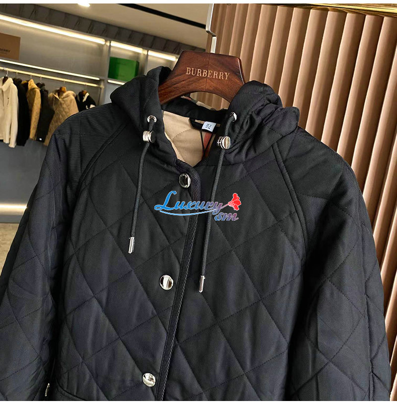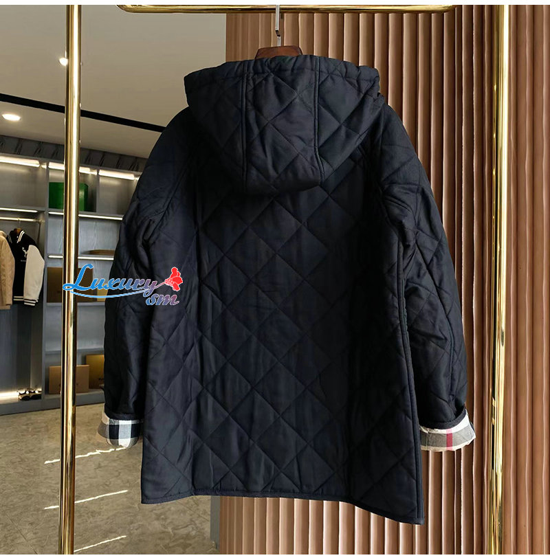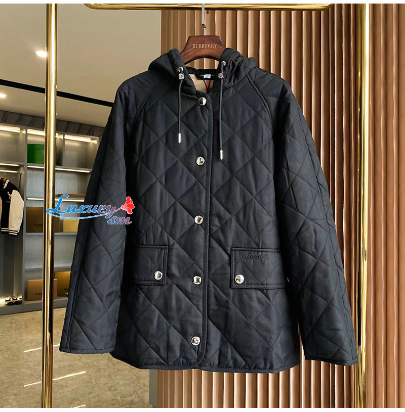 BURBERRY-80627551 버버리 블랙 다이아몬드 퀼팅 체온조절 후드 재킷 여성용