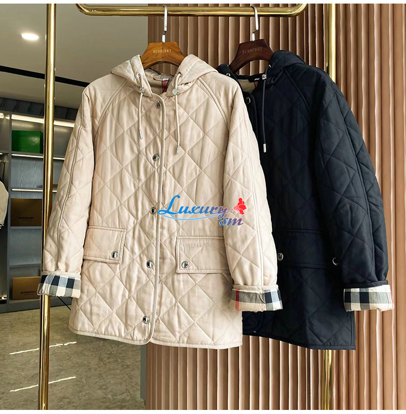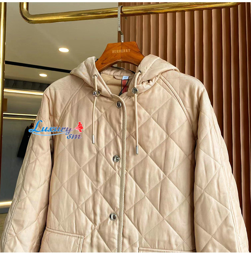 다이아몬드 퀼팅 디자인의 후드 재킷. 버버리 체크