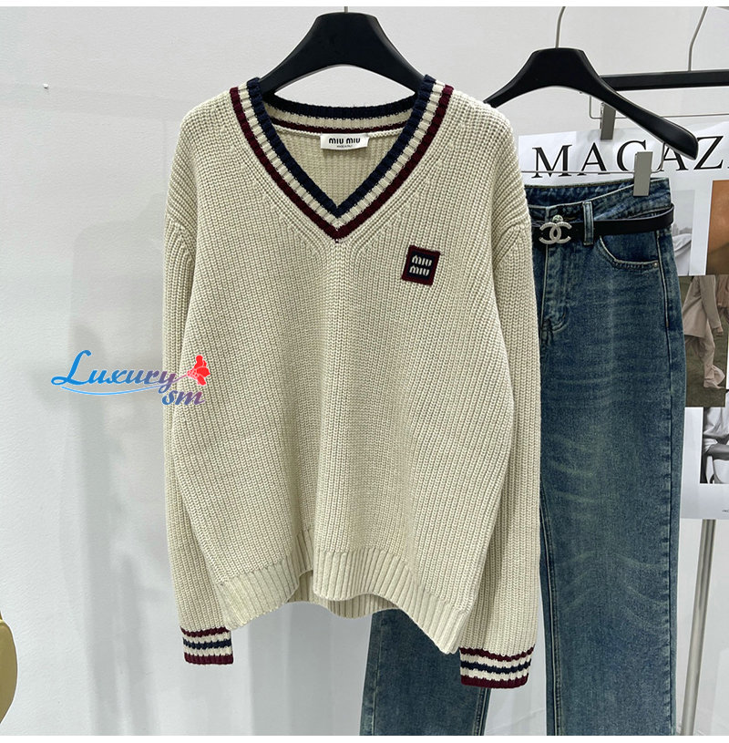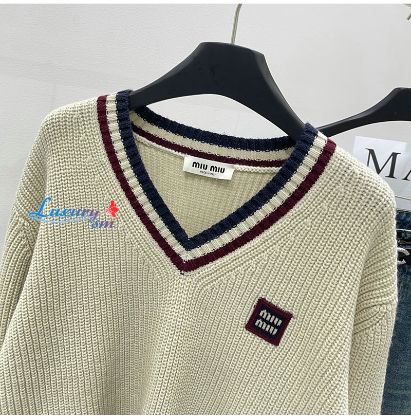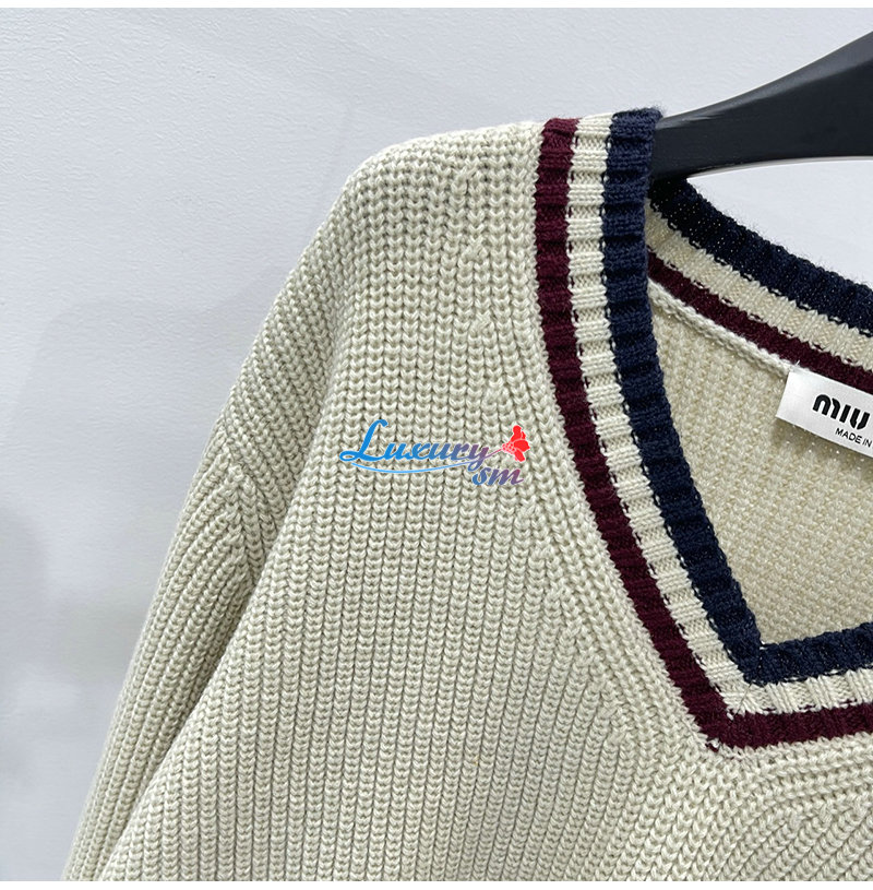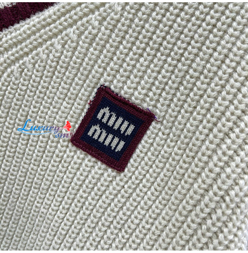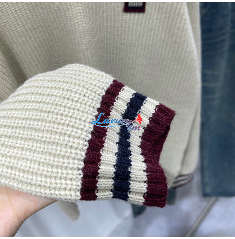MIUMIU-01186 미우미우 화이트 스트라이프 장식 스웨터 여성용