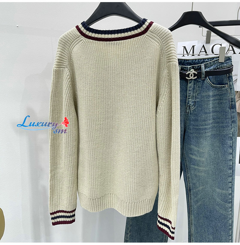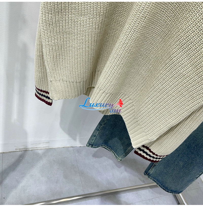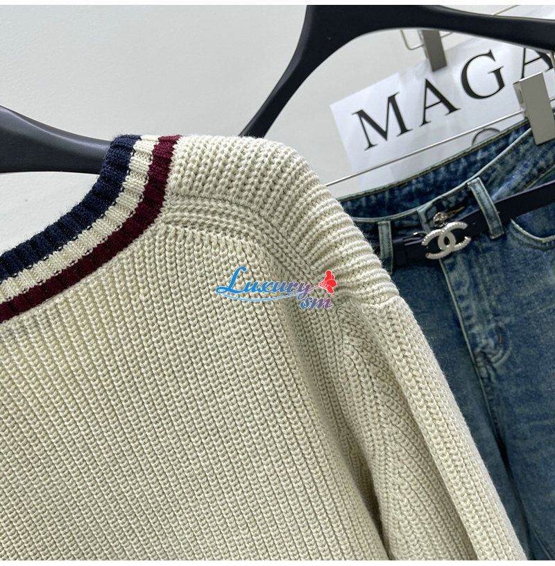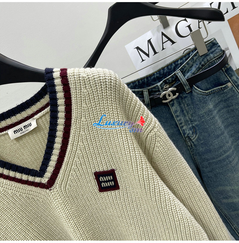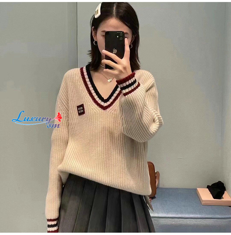 MIUMIU-01186 미우미우 화이트 스트라이프 장식 스웨터 여성용