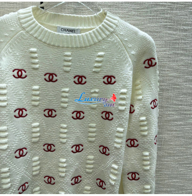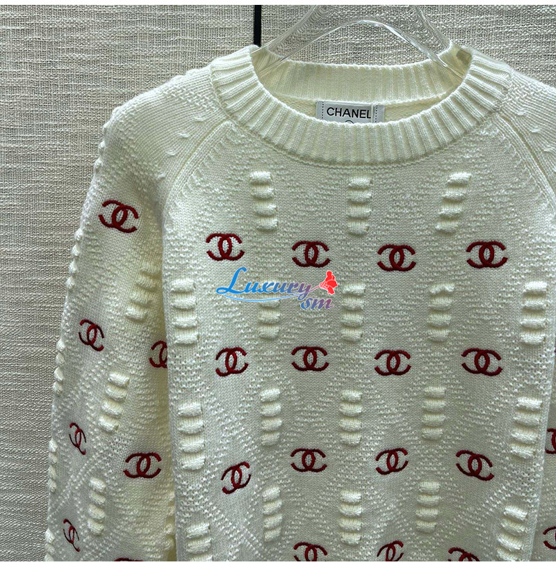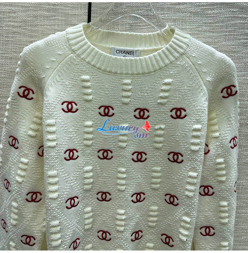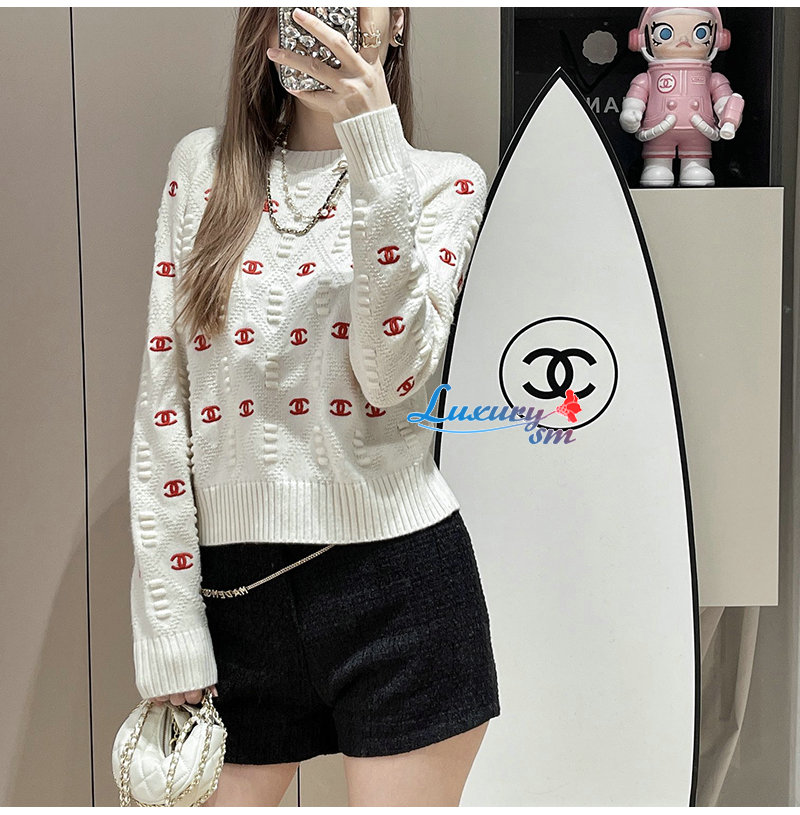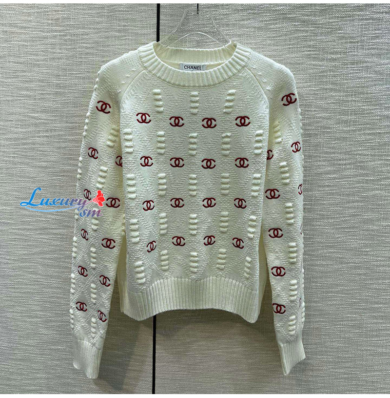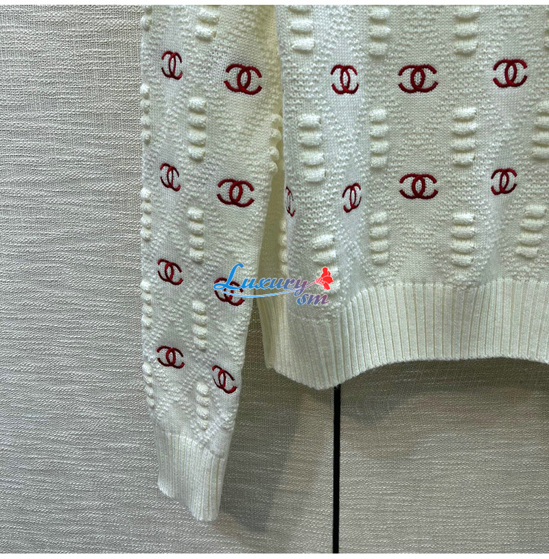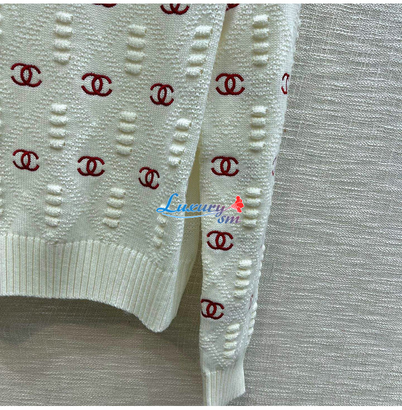 CHANEL-012115 샤넬 화이트 CC 로고 아플리케 장식 스웨터 여성용