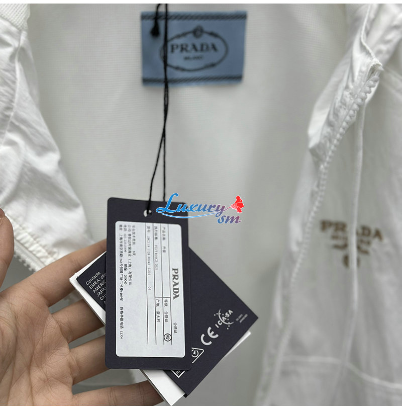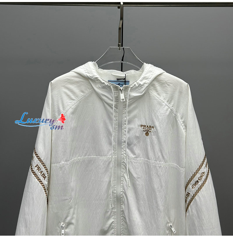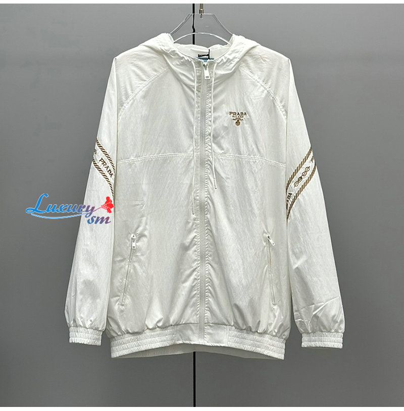 PRADA-031019 프라다 화이트 아플리케 장식 바람막이 후드 재킷 여성용