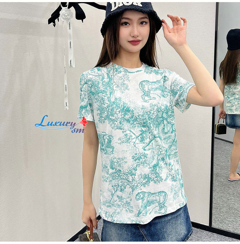 DIOR-443T09 디올 화이트/그린 Dioriviera 티셔츠 여성용