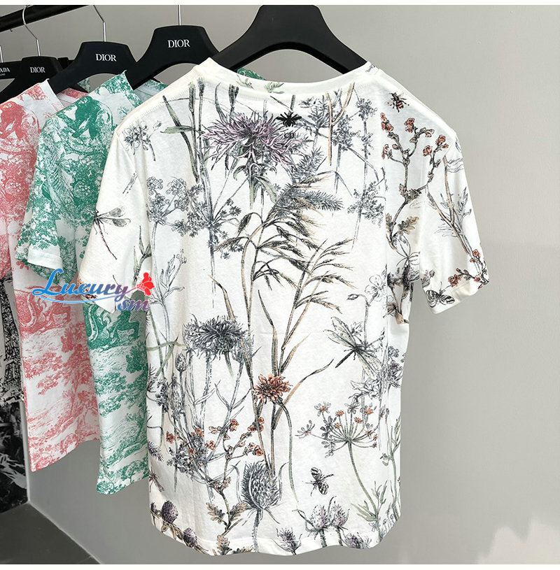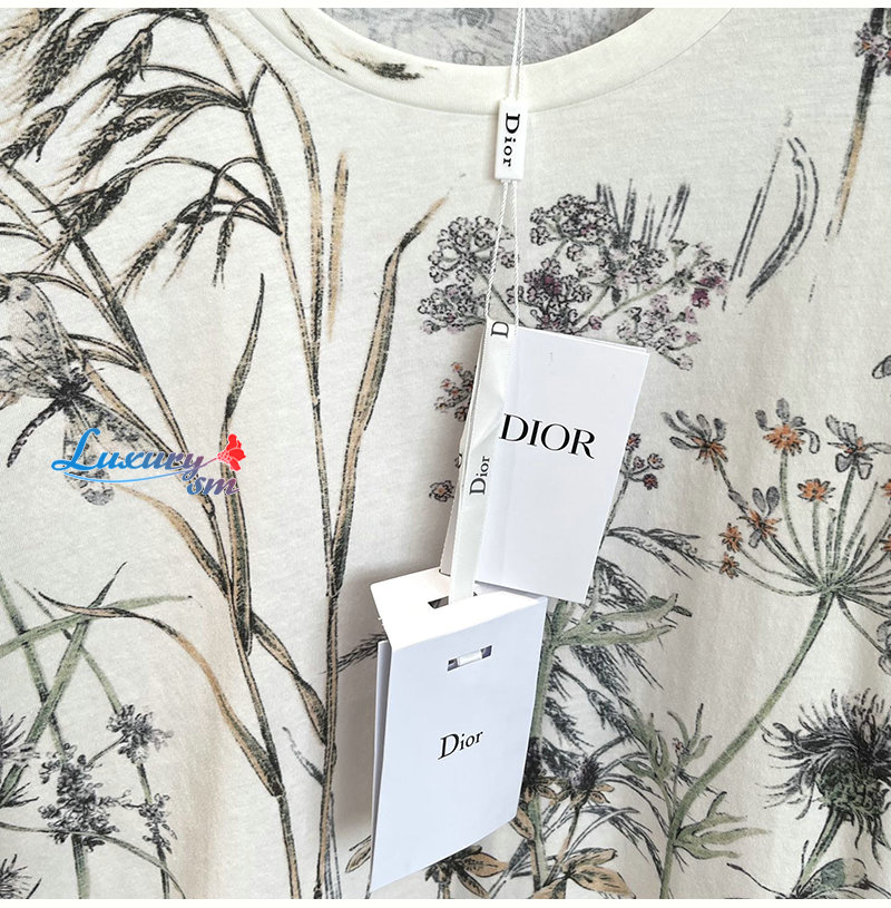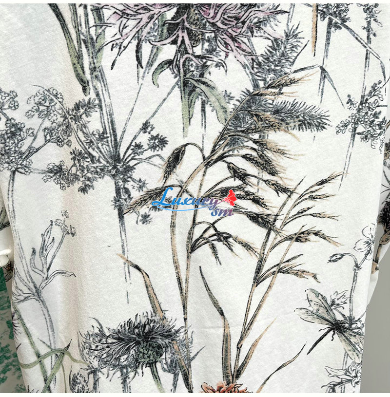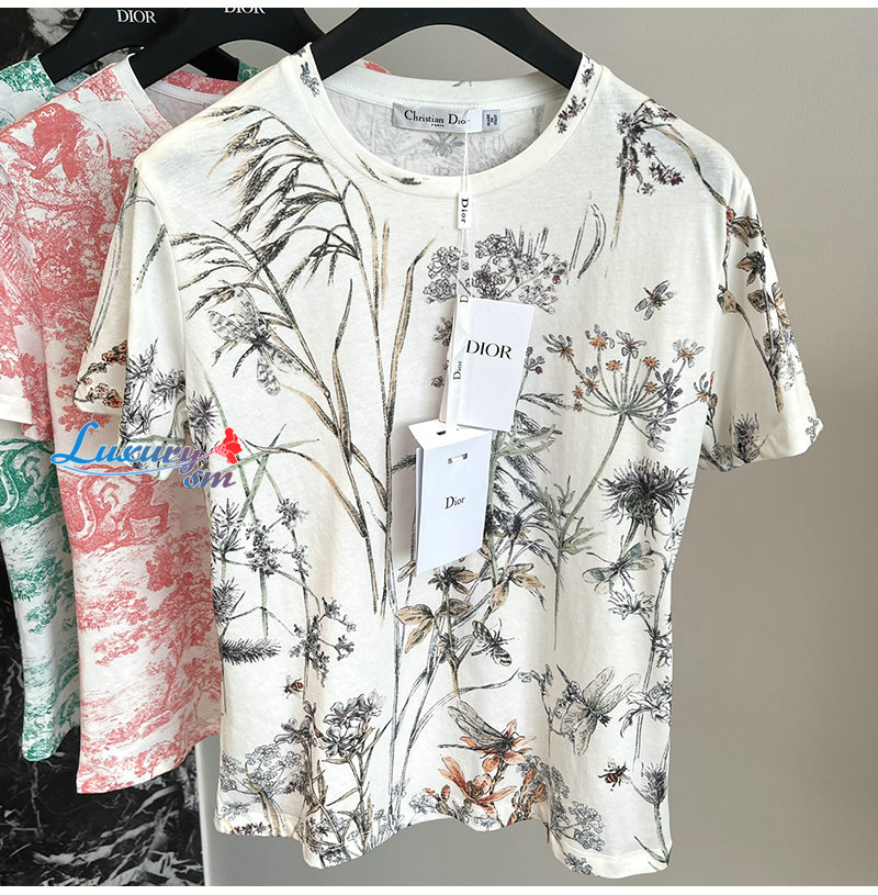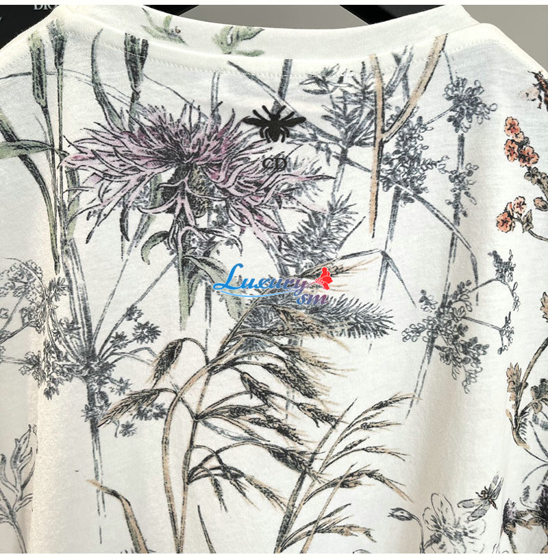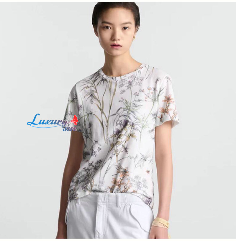 DIOR-443T09 디올 화이트 Dior Herbarium 모티브 티셔츠 여성용