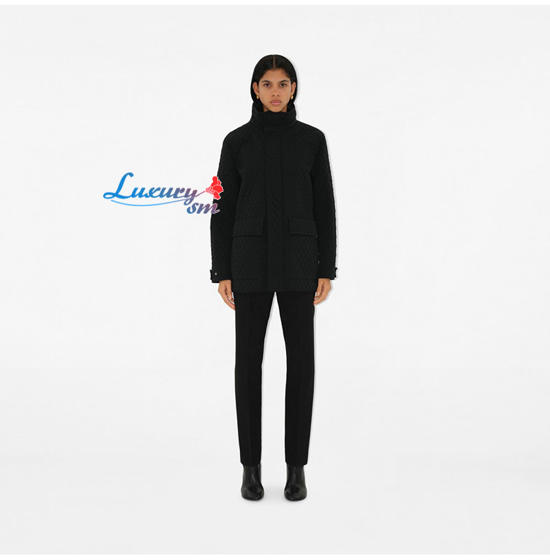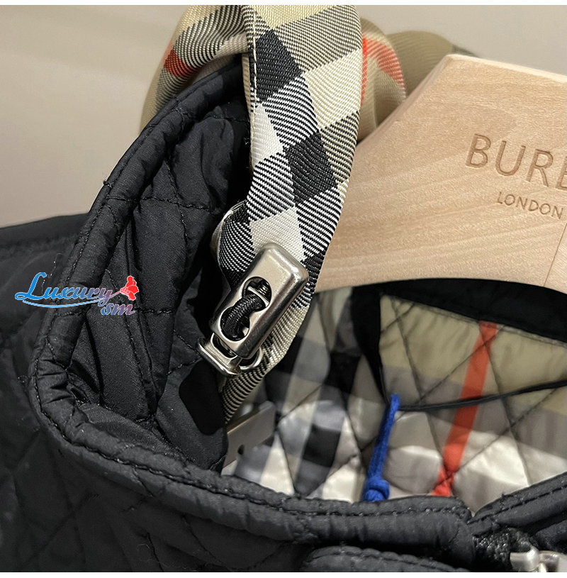 BURBERRY-80938761 버버리 블랙 체크 후드 퀼팅 나일론 재킷 여성용