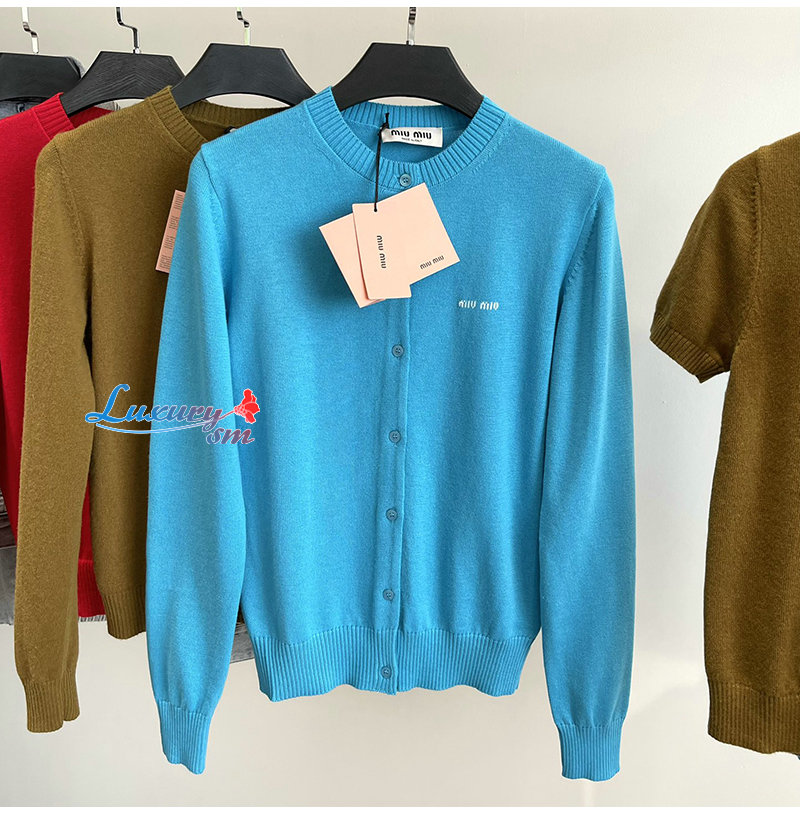 MIUMIU-10275 미우미우 블루 니트 코튼 가디건 여성용